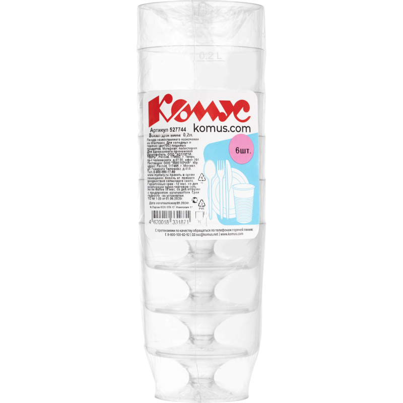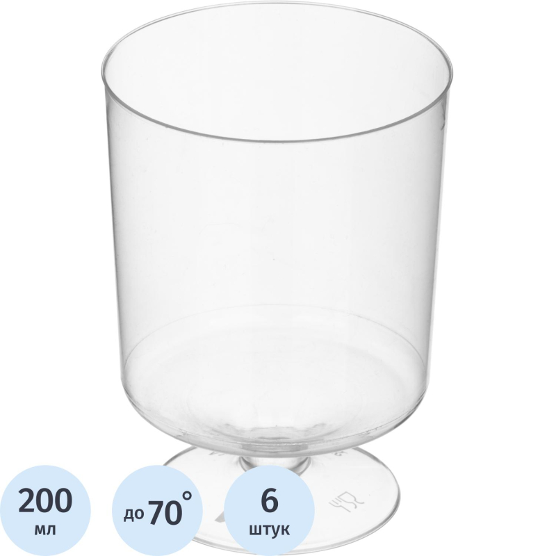 Бокал одноразовый для вина Комус Стандарт пластиковый прозрачный 200 мл 6 штук в упаковке Бокал одноразовый рекомендуется для пикников, путешествий, походов и отдыха на даче. Бокалы емкостью 200 мл изготавливаются из прозрачного полистирола, имеют малый вес, не разбиваются и удобны при транспортировке. По верхнему краю высота 10 см, диаметр 8 см. Изделия комплектуются по 6 штук в упаковке. Рекомендуемая температура использования до+70 градусов. Верхний диаметр: 66 мм. Нижний диаметр: 50 мм. Высота: 95 мм. <!--noindex-->Товар произведен под контролем Комус. Мы специально позаботились о Партнерах, которые превыше всего ценят качество и комфорт и разработали линейку Одноразовой посуды самых востребованных размеров для обеспечения быстрого питания в офисе, образовательных и производственных учреждениях, сферы гостеприимство и общественное питание и многих других. Производство расположено в России, что гарантирует постоянный контроль качества и оптимальные цены.<!--/noindex-->