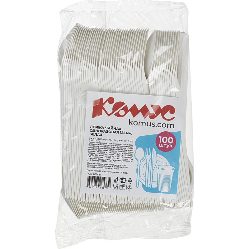 Ложка одноразовая чайная Комус Стандарт белая 125 мм 100 штук в упаковке. Одноразовые чайные ложки выполнены из полистирола белого цвета. Подходят для походов, пикников, офисов, поездок. Применимы для холодных и горячих напитков Поставляются по 100 штук в упаковке. Длина каждой чайной ложки - 125 мм. Максимальная температура использования 75°C. <!--noindex-->Товар произведен под контролем 'Комус'. Мы специально позаботились о Партнерах, которые превыше всего ценят качество и комфорт и разработали линейку Одноразовой посуды самых востребованных размеров для обеспечения быстрого питания в офисе, образовательных и производственных учреждениях, сферы гостеприимства и общественного питания и многих других. Производство расположено в России, что гарантирует постоянный контроль качества и оптимальные цены.<!--/noindex-->