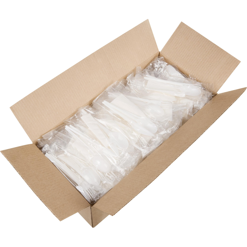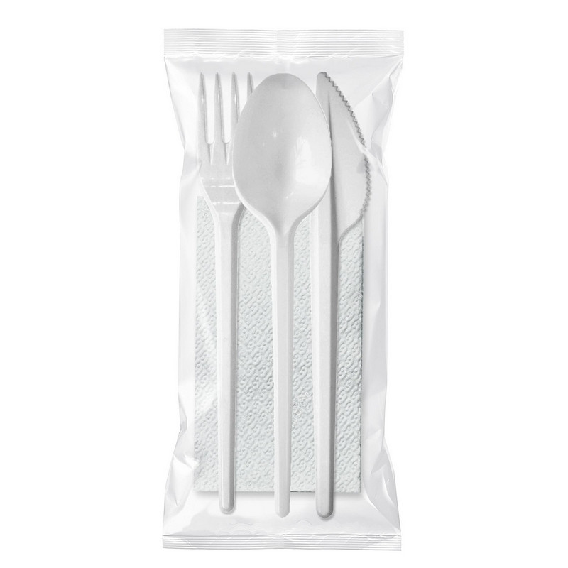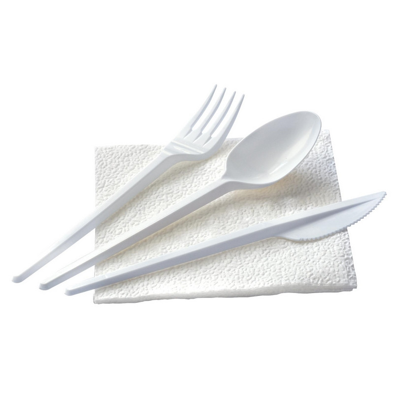 Набор столовых приборов №4 на 1 персону (4 предмета, 200 наборов в упаковке). Набор одноразовой посуды на 1 персону в особенности удобен для отдыха на природе. В набор входит: вилка, ложка столовая, нож, салфетка. Набор изготовлен из качественного полистирола (PS6) и целлюлозы. Разрешен контакт с холодными и горячими до +75 °C пищевыми продуктами. Срок годности не ограничен, при соблюдении условий хранения. В упаковке 200 наборов. <!--noindex-->Товар относится к ценовому сегменту "эконом". Имеет базовые характеристики и более простую упаковку. Отвечает основным требованиям потребления.<!--/noindex--> Внимание! Товар поставляется в транспортном коробе.