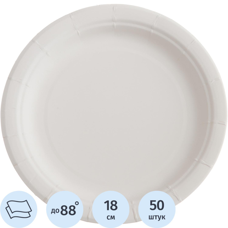 Тарелка одноразовая 'Комус Эконом' бумажная белая 180 мм 50 штук в упаковке<b/> Одноразовые тарелки 'Комус Эконом' подходят как для холодных, так и для горячих блюд. Максимальная температура используемых пищевых продуктов +88 °С. Предназначены для корпоративных мероприятий любого формата, выездов на природу, пикников. При соблюдении условий хранения срок годности не ограничен. Хранить при температуре от +5 до +30 °С и относительной влажности воздуха не более 60% в крытых сухих помещениях, вдали от нагревательных приборов, открытого огня, воспламеняющихся и горючих жидкостей. Защищать от воздействия прямых солнечных лучей. Изделия готовы к применению без предварительного промывания водой, не подходят для разогрева еды в микроволновой печи. Изготовлены из ламинированной бумаги белого цвета. Диаметр тарелки: 180 мм. Поставляются упаковками по 50 штук. <!--noindex-->Товар произведен под контролем 'Комус'. Мы специально позаботились о Партнерах, которые превыше всего ценят качество и комфорт, и разработали линейку одноразовой посуды самых востребованных размеров для обеспечения быстрого питания в офисе, образовательных и производственных учреждениях, сферы гостеприимства и общественного питания и многих других. Производство расположено в России, что гарантирует постоянный контроль качества и оптимальные цены.<!--/noindex--><!--noindex-->Товар относится к ценовому сегменту "эконом". Имеет базовые характеристики и более простую упаковку. Отвечает основным требованиям потребления.<!--/noindex-->