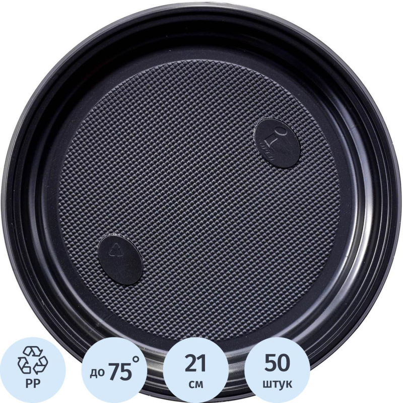 Тарелка одноразовая 'Комус' пластиковая черная 210 мм 50 штук в упаковке Одноразовые тарелки 'Комус' подходят как для холодных, так и для горячих блюд. Максимальная температура используемых пищевых продуктов +75 °С. Предназначены для корпоративных мероприятий любого формата, выездов на природу, пикников. Материал экологически безопасен, не выделяет токсических веществ при взаимодействии с горячей пищей, выдерживает отрицательные температуры. Изделия готовы к применению без предварительного промывания водой, подходят для разогрева еды в микроволновой печи. Изготовлены из черного пластика (полипропилена). Диаметр тарелки: 210 мм. Поставляются упаковками по 50 штук.<!--noindex-->Товар произведен под контролем 'Комус'. Мы специально позаботились о Партнерах, которые превыше всего ценят качество и комфорт, и разработали линейку одноразовой посуды самых востребованных размеров для обеспечения быстрого питания в офисе, образовательных и производственных учреждениях, сферы гостеприимства и общественного питания и многих других. Производство расположено в России, что гарантирует постоянный контроль качества и оптимальные цены.<!--/noindex--> <!--noindex-->Товар относится к ценовому сегменту "эконом". Имеет базовые характеристики и более простую упаковку. Отвечает основным требованиям потребления.<!--/noindex-->