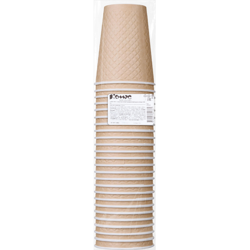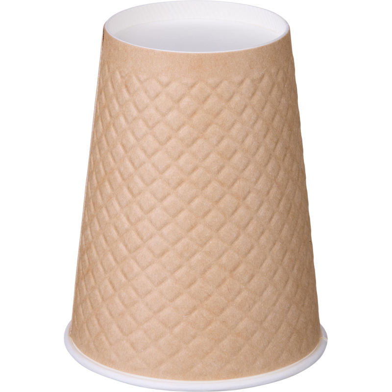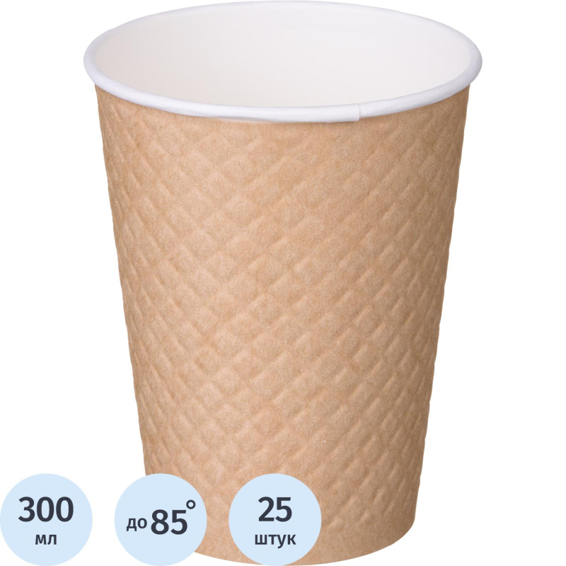 Стакан одноразовый TasteQuality бумажный, коричневый, 300 мл, 25 штук в упаковке. Двухслойные одноразовые бумажные стаканы изготовлены из высококачественного финского картона с полиэтиленовой ламинацией. Благодаря воздушной прослойке между слоями бумаги температура напитка сохраняется дольше, а стакан комфортно держать в руках. Стаканы предназначены для горячих (максимальная температура 85°С) и холодных напитков. Внимание! Стаканы нельзя использовать в СВЧ-печи. Плотность (260 15PE) +-10% (внутренний слой); 200 +-10% (наружный слой). Рабочий (полезный) объем стакана - 300 мл, полный объем - 430 мл. Верхний диаметр: 90 мм. Нижний диаметр: 60 мм. Высота: 112 мм.<!--noindex-->Товар относится к ценовому сегменту 'эконом'. Имеет базовые характеристики и более простую упаковку. Отвечает основным требованиям потребления.<!--/noindex--><!--noindex-->Внешний вид и/или характеристики товара могут быть изменены производителем в соответствии с производственным процессом.<!--/noindex-->