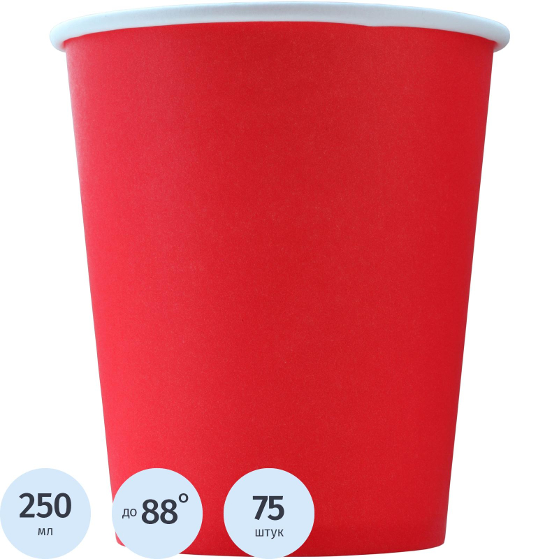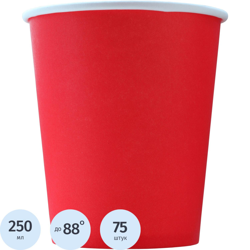 Стакан одноразовый, бумажный, 250 мл, красный, 75 штук в упаковке, Комус Эконом. Стаканы одноразовые бумажные подходят как для холодных, так и для горячих жидкостей, поскольку изготовлены из плотного бумажного материала с ламинацией на внутренней стороне. Цвет красный. Рабочий объем стакана - 250 (+/- 10) мл, полный объем - 280 (+/- 10) мл. В одной упаковке 75 штук. Максимальная допустимая температура жидкости - 88 °C. Внимание! Стаканы нельзя использовать в СВЧ-печи. Плотность бумаги - (232 15PE) -10%. Верхний диаметр стакана: 80 мм. Нижний диаметр стакана: 57 мм. Высота стакана: 88 мм. Для защиты рук от воздействия горячей температуры содержимого стаканчика можно использовать кап-холдер артикул 1386314. Товар произведен под контролем ?Комус?. Мы специально позаботились о Партнерах, которые превыше всего ценят качество и комфорт и разработали линейку Одноразовой посуды самых востребованных размеров для обеспечения быстрого питания в офисе, образовательных и производственных учреждениях, сферы гостеприимства и общественного питания и многих других. Производство расположено в России, что гарантирует постоянный контроль качества и оптимальные цены.<!--noindex-->Товар относится к ценовому сегменту ?эконом?. Имеет базовые характеристики и более простую упаковку. Отвечает основным требованиям потребления.<!--/noindex--><!--noindex-->Внешний вид и/или характеристики товара могут быть изменены производителем в соответствии с производственным процессом.<!--/noindex-->