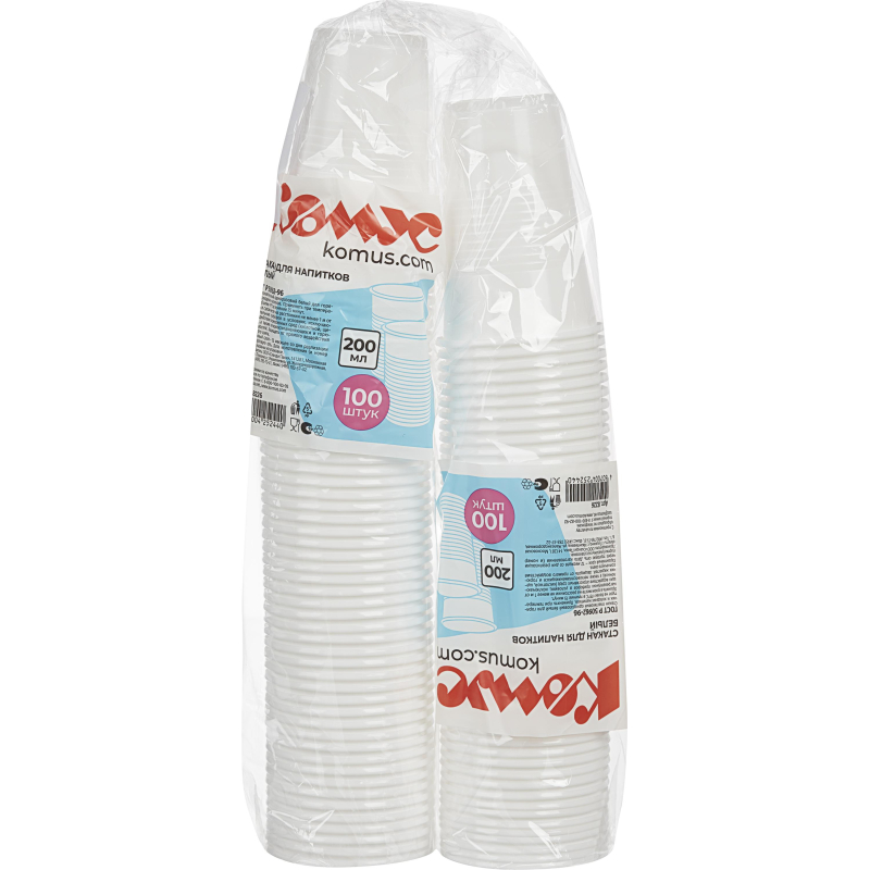 Стакан одноразовый Комус Стандарт пластиковый белый 200 мл, 100 штук в упаковке. Одноразовые стаканы ?Комус? предназначены как для холодных, так и для горячих напитков. Максимальная температура жидкости - 75 градусов по Цельсию. Имеют рифленые стенки, изготовлены из полипропилена белого цвета. Объем стакана - 200 мл. Стаканы одноразовые поставляются в упаковках по 100 штук. Транспортный короб содержит 20 упаковок. Высота стакана - 95 мм. Верхний диаметр - 70,3 мм. Нижний диаметр - 46,5 мм. Плотность - 110 мкм. Товар произведен под контролем ?Комус?. Мы специально позаботились о Партнерах, которые превыше всего ценят качество и комфорт, и разработали линейку Одноразовой посуды самых востребованных размеров для обеспечения быстрого питания в офисе, образовательных и производственных учреждениях, сферы гостеприимства и общественного питания и многих других. Производство расположено в России, что гарантирует постоянный контроль качества и оптимальные цены. <!--noindex-->Внешний вид и/или характеристики товара могут быть изменены производителем в соответствии с производственным процессом.<!--/noindex-->