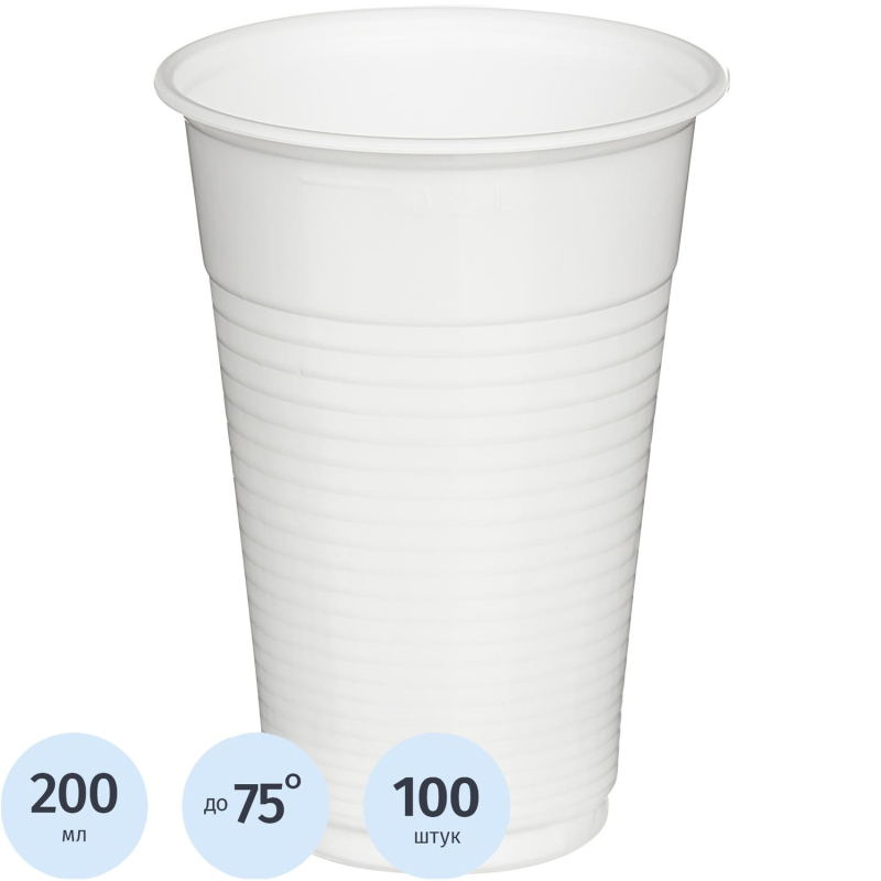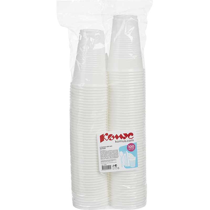 Стакан одноразовый пластиковый 200 мл, белый, 100 штук в упаковке Комус Эконом. Стаканы одноразовые предназначены как для холодных, так и для горячих напитков. Имеют рифленые стенки, изготовлены из прозрачного полипропилена белого цвета. Объем - 200 мл. Максимальная температура жидкости - 75 градусов по Цельсию. Одноразовые стаканы поставляются в упаковках по 100 штук, по 24 упаковки в транспортном коробе. Верхний диаметр: 70 мм. Нижний диаметр: 42 мм. Высота: 97 мм. Товар произведен под контролем ?Комус?. Мы специально позаботились о Партнерах, которые превыше всего ценят качество и комфорт, и разработали линейку Одноразовой посуды самых востребованных размеров для обеспечения быстрого питания в офисе, образовательных и производственных учреждениях, сферы гостеприимства и общественного питания и многих других. Производство расположено в России, что гарантирует постоянный контроль качества и оптимальные цены. <!--noindex-->Внешний вид и/или характеристики товара могут быть изменены производителем в соответствии с производственным процессом.<!--/noindex-->