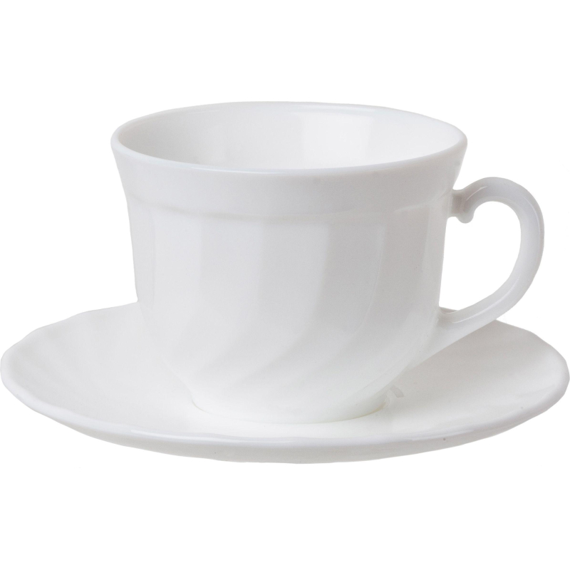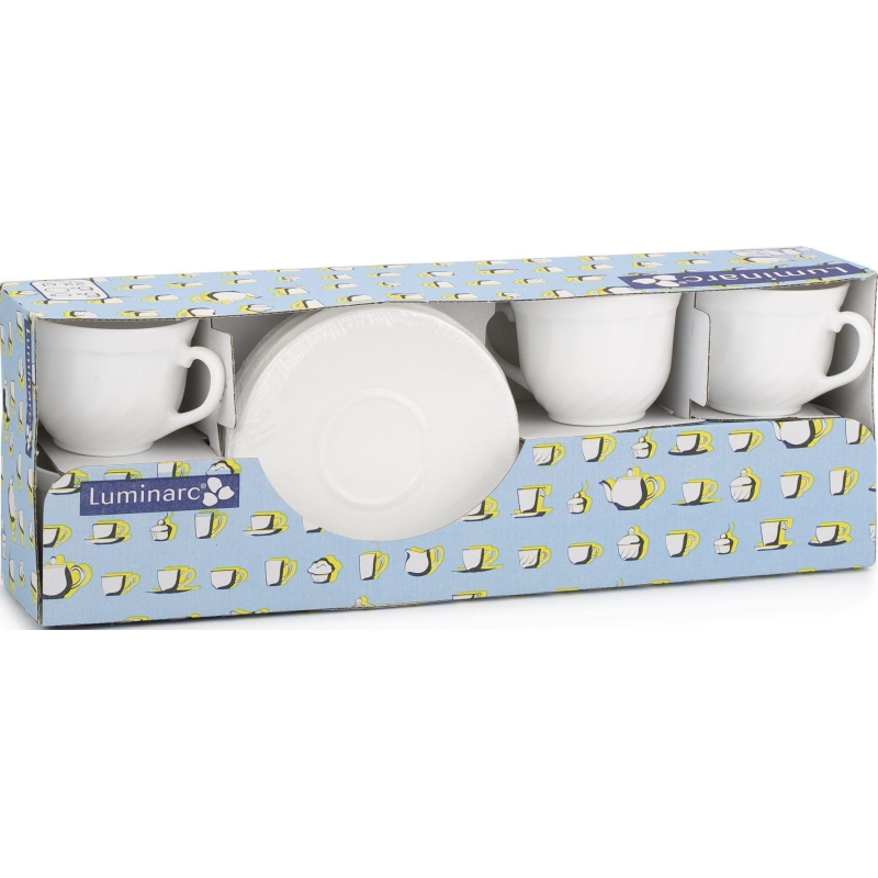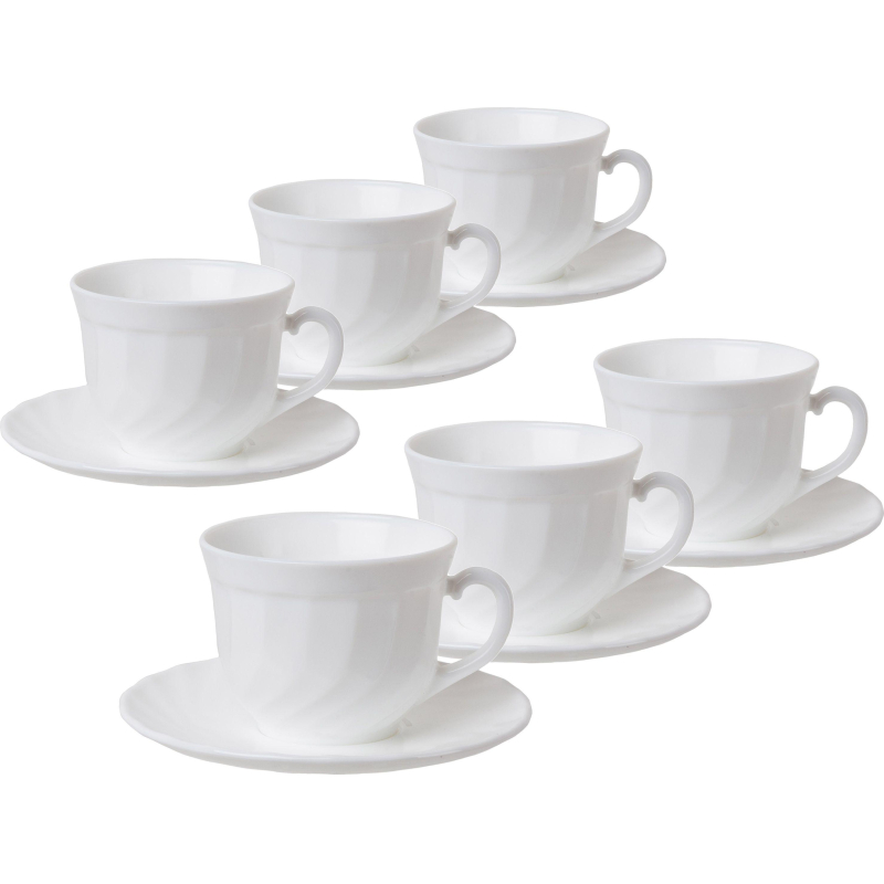Чайный сервиз Luminarc 'Трианон' на шесть персон включает шесть чашек и шесть блюдец классического дизайна. Объем каждой чашки - 220 мл. Посуда белого цвета выполнена из гладкого стекла, которое прошло специальные процедуры упрочнения. Сервиз устойчив к повреждениям и перепадам температуры. Поставляется в эргономичной фирменной упаковке. Толщина стенок - 3 мм.