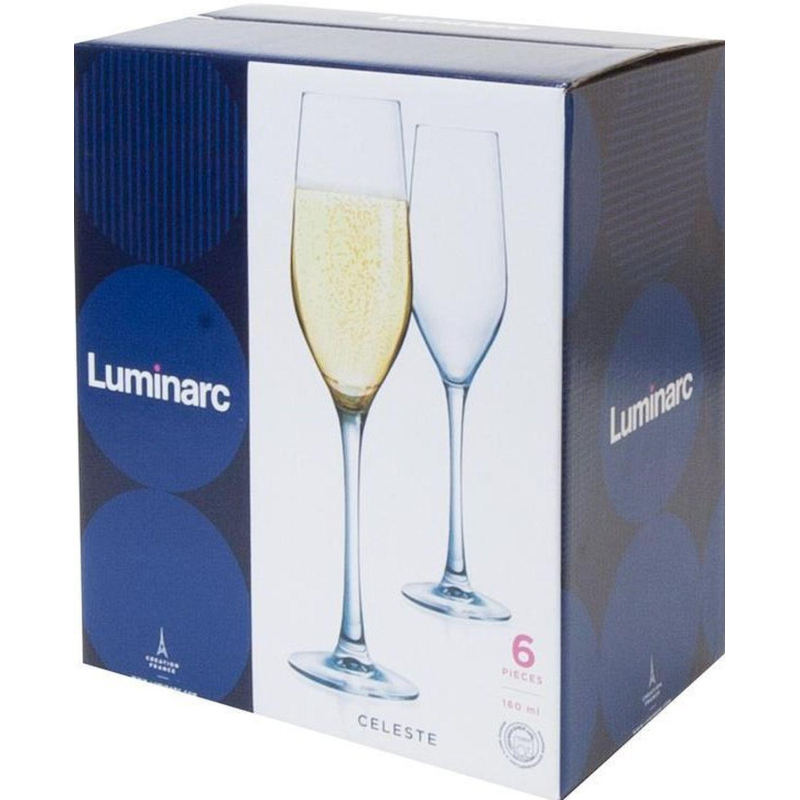 Набор бокалов для шампанского Luminarc Селест 160 мл (6 штук в упаковке). Бокалы Luminarc из коллекции Селест для шампанского. Высокий и узкий бокал изящной формы не позволит быстро испариться пузырькам газа и гарантирует долгое наслаждение напитком. Высота бокала: 24 см. Объем: 160 мл. В наборе 6 предметов. <!--noindex-->Внешний вид и/или характеристики товара могут быть изменены производителем в соответствии с производственным процессом.<!--/noindex-->
