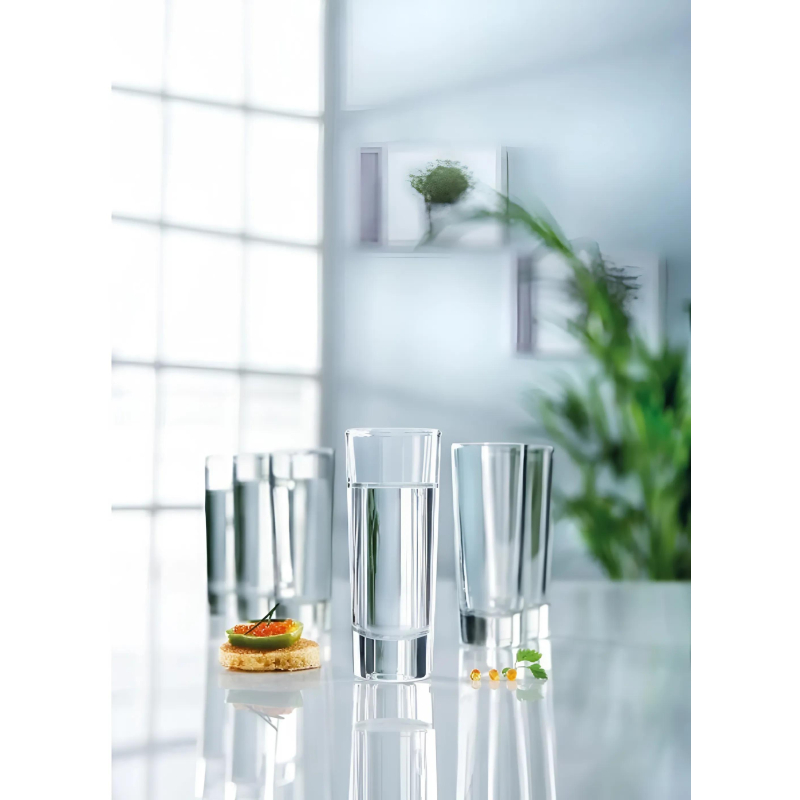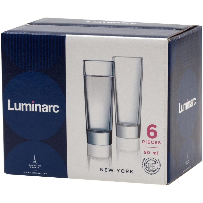Набор стопок для водки Luminarc Нью-Йорк стеклянных 50 мл (6 штук в упаковке). Набор стопок Нью-Йорк благодаря вертикально устремленной форме не только напоминает собой знаменитые небоскребы, но и дает возможность сделать подачу напитков еще более архитектурной. Добавив сверху декор в виде фруктовых долек, можно создать личный Эмпайр-Стейт-Билдинг в миниатюре! Стопки выполнены из высококачественного стекла. Количество в наборе - 6 шт. Объем стопки - 50 мл. Можно мыть в посудомоечной машине.