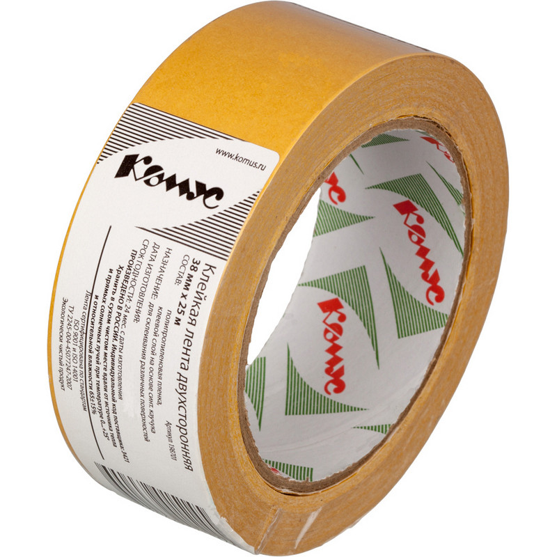Клейкая лента двусторонняя монтажная Комус на полипропиленовой основе с клеевым слоем, изготовленным на основе синтетического каучука. Имеет широкую сферу применения. Толщина ленты составляет 83 мкм. Поставляется в роликах с втулкой. Один ролик шириной 38 мм содержит 25 м ленты. Цвет - белый. Рабочая температура: от 10 до 50 градусов. Предел прочности при разрыве, N/см - 70. Количество лент в упаковке - 1 шт. Количество упаковок в коробе - 48 шт. Цвет защитной отрывной пленки желтый. Перед применением следует удалить данный слой на необходимом для работы участке.