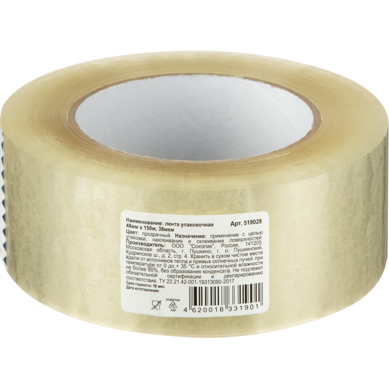 Упаковочная клейкая лента толщиной 38 мкм изготовлена на основе прозрачного полипропилена. Отличается высокой адгезией клея (слипанием с поверхностью), стойкостью к разрыву. Ширина ленты - 48 мм, длина рулона - 150 м. Широкая клейкая лента предназначена для упаковки объемных и тяжеловесных грузов, не теряет свойств на открытом воздухе при температуре от 10 до 30°C. Не хранить под прямыми солнечными лучами. Количество лент в упаковке 1 штука. Количество упаковок в транспортном коробе 36 штук. Ленту липкую хранят в вертикальном положении в крытых складских помещениях, при температуре от +5 до +30°С. Перед использованием липкую ленту необходимо выдержать при температуре выше +20°С не менее 24 часов.