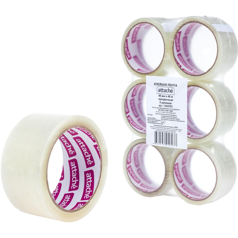 Упаковочная клейкая лента толщиной 40 мкм изготовлена на основе прозрачного полипропилена. Отличается высокой адгезией клея (слипанием с поверхностью), стойкостью к разрыву. Ширина ленты - 48 мм, длина рулона - 45 м. Широкая клейкая лента предназначена для упаковки объемных и тяжеловесных грузов, не теряет свойств на открытом воздухе при температуре от 10 до 30°C. Не хранить под прямыми солнечными лучами. Количество лент в упаковке 6 штук. Количество упаковок в транспортном коробе 6 штук. Ленту липкую хранят в вертикальном положении в крытых складских помещениях, при температуре от +5 до +30°С. Перед использованием липкую ленту необходимо выдержать при температуре выше +20°С не менее 24 часов.