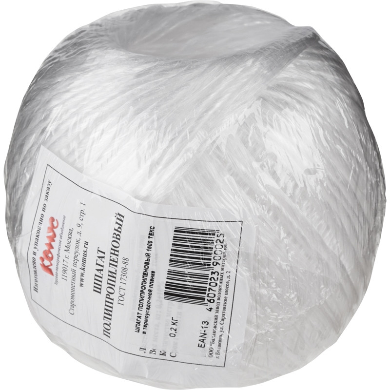 Шпагат полипропиленовый крученный, в бобине ~0.2 кг, плотность 1,6 кТекс, намотка 125 м.