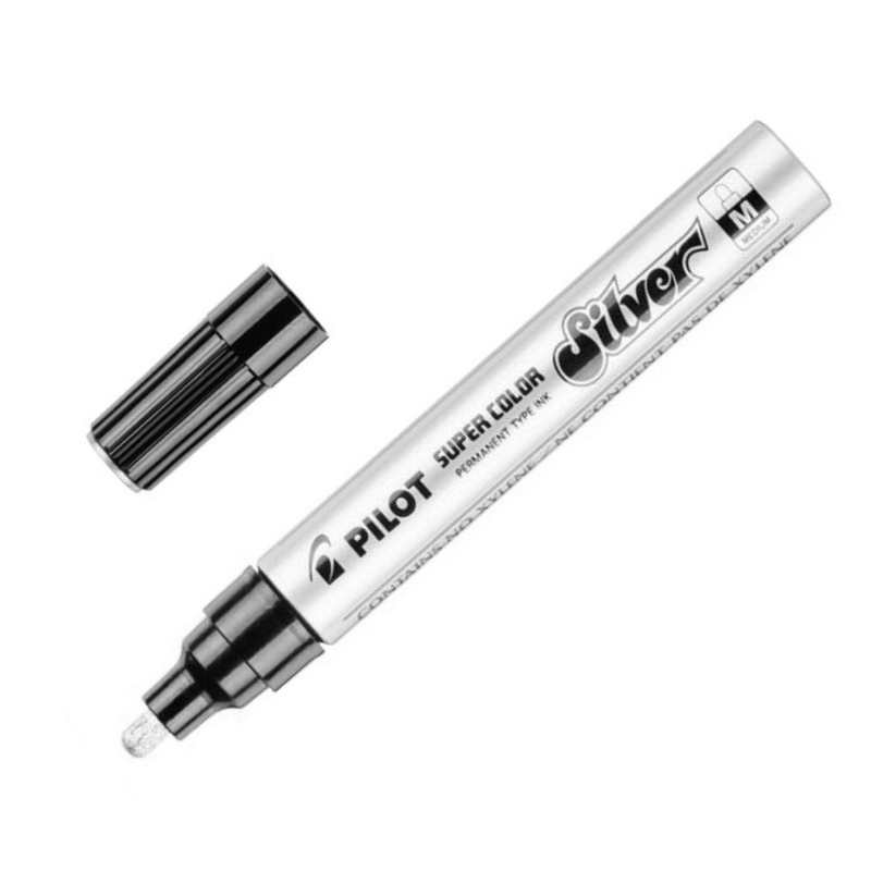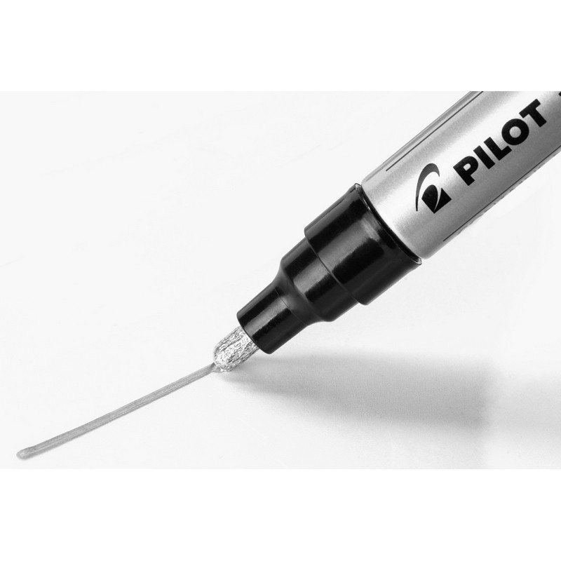 Лаковый промышленный маркер Pilot, цвет чернил - серебристый. Отлично подходит для оформления плакатов и стенгазет, для росписи по стеклу и керамике, для маркировки деталей и нанесения инвентарных номеров и т.д. Инструкция по применению маркера: 1. Перед использованием хорошенько встряхнуть с закрытым колпачком, подождать, пока чернила наполнят округлый стержень.2. Снимите колпачок, прижмите наконечник к поверхности, надавите и удерживайте пока не проступит краска.3. Применять после того как убедитесь, что вытекает исходный цвет.Предостережения: плотно закрывайте колпачок после применения, держите маркер вдали от огня, прямые солнечные лучи вызывают обесцвечивание.