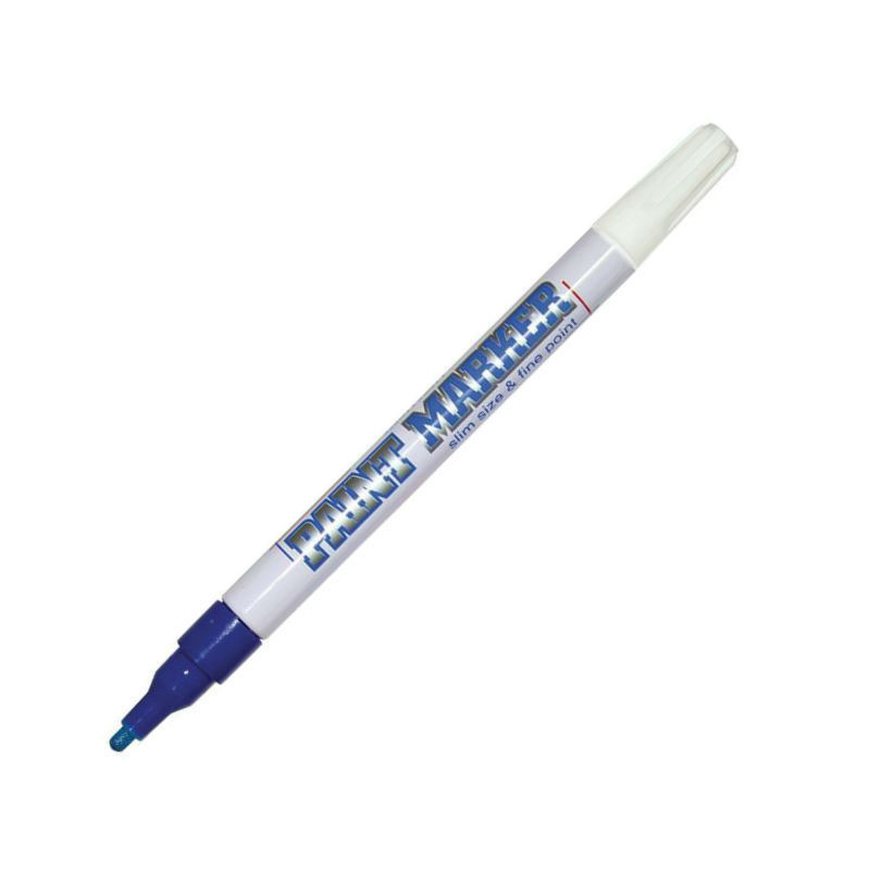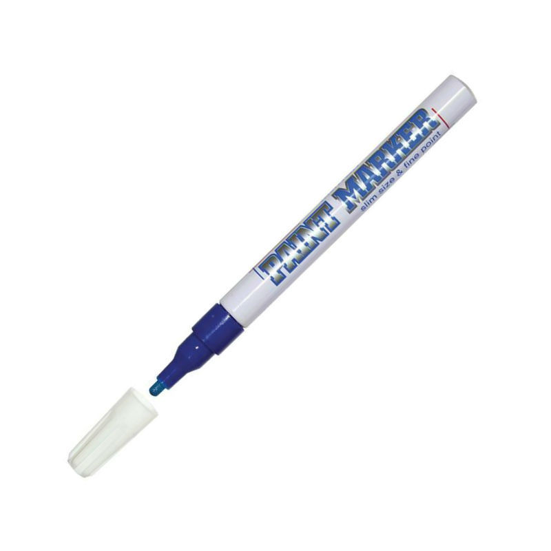 Лаковый промышленный маркер MunHwa, синий, предполагает оптимальное соотношение цены и качества, для тех, кто хочет сэкономить. Толщина линии письма 2 мм. Количество краски - 5 г. Качество товара отвечает основным характеристикам: 1. Краска маркера универсальна и предназначена практически для любого типа поверхности: бумаге, дереву, пластику, металлу, натуральному и искусственному камню, стеклу. Краска морозоустойчива, не выгорает на солнце. Может применяться как на горячей (до 130 градусов по Цельсию) так и на загрязненной, в том числе и маслами, поверхности. 2. Благодаря дозированной подаче краски при помощи клапанного пишущего узла исключаются растекания, неровности линии и преждевременное пересыхание. 3. Богатая цветовая палитра краски на нитрооснове. Инструкция по применению маркера:1. Перед использованием хорошенько встряхнуть с закрытым колпачком для эффективной выдачи пигмента.2. Снимите колпачок, прижмите наконечник к поверхности, надавите и удерживайте, пока не проступит краска.3. Применять после того как убедитесь, что вытекает исходный цвет. Предостережения: плотно закрывайте колпачок после применения, держать маркер вдали от огня, прямые солнечные лучи вызывают обесцвечивание.