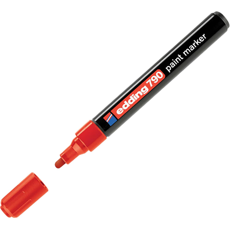 Более экономичная версия универсального маркера - маркер Edding 790 используется для промышленной непрозрачной маркировки практически всех материалов, например, стекла, пластика, дерева или металла. Может применяется для письма на жирных, пыльных, грязных поверхностях. Лаковый маркер устойчив к кислотам, растворителям, механическому истиранию, свету. Высококонцентрированный пигмент хорошо ложится на гладкие и шероховатые поверхности. Специальные структуры, введенные в состав маркера Edding E 790 растворяют, масляную пленку на поверхности письма. Непрозрачные лаковые чернила позволяют делать хорошо заметные надписи густым плотным слоем даже на темных или прозрачных поверхностях. Корпус промышленного маркера изготовлен из пластика. Маркер Edding E 790 имеет упроченный круглый (пулевидный) наконечник. Наконечник маркера может быть заменен по мере истирания. Благодаря тонкому наконечнику маркером может наносится маркировка на небольшие элементы и поверхности. Толщина линии - 2-3 мм. Поток чернил регулируется клапаном. Чернила маркера с лакирующим эффектом на основе нитрокраски. Водостойкий, быстро сохнет. Термостойкость надписи до 400 градусов по Цельсию. Надписи цветами 05-010, 049, 054 хорошо видимы до 1000 градусов по Цельсию. Маркер Edding E 790 хорошо зарекомендовал себя в работе при перепадах температур от -15 до 30. Промышленный лаковый маркер Edding Е-790 универсален. Используется, например, при нанесении меток на разнородные материалы. При маркировке изделий из резины, пластика, стекла, металла, кабеля, проводов, при нанесении маркировки на товары достаточно одного маркера - Edding E 790. Идеально подходит для маркировки грузов, приборостроения, технологической маркировки. Кроме того, маркер Edding E 790, благодаря разнообразной палитре цветов и свойствам красящего вещества, широко используется для декоративных и оформительских работ дизайнерами. используется в витражных работах, росписи по дереву и керамике, для других интерьерных работ. Инструкция по применению маркера: 1. Перед использованием хорошенько встряхнуть с закрытым колпачком. 2. Снимите колпачок, прижмите наконечник к поверхности, надавите и удерживайте пока не проступит краска. 3. Применять после того как убедитесь, что вытекает исходный цвет. Предостережение: плотно закрывайте колпачок после применения, держать маркер вдали от огня и прямых солнечных лучей.