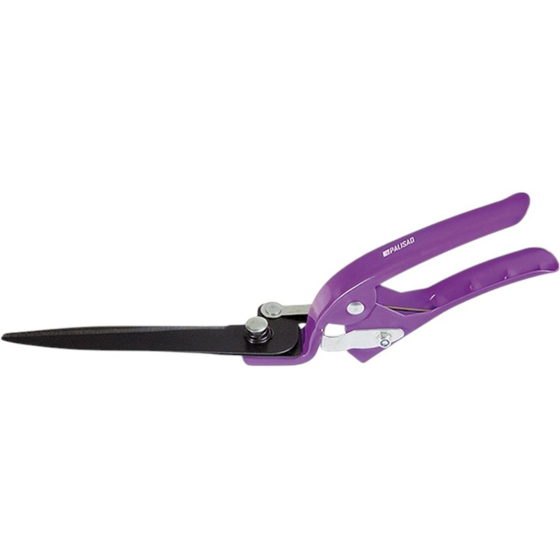 Ножницы газонные Palisad с металлическими рукоятками и боковым фиксатором. Предназначены для стрижки травы на небольших газонах и клумбах. Лезвия изготовлены из инструментальной стали У8, остро заточены и имеют оксидированное покрытие для защиты от коррозии.