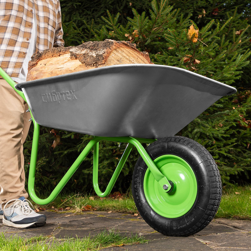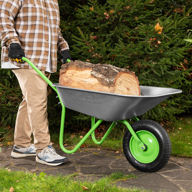 Тачка садовая одноколесная Сибртех облегченная 65 л грузоподьемность 90 кг (689615)Предназначена для перевозки различных грузов при проведении сельскохозяйственных работ, в том числе строительных материалов. Легкая и маневренная садовая одноколесная тачка. Рама, состоящая из двух полурам, окрашена порошковой эмалью. Кузов изготовлен из оцинкованной стали, имеет закругленные борта. Наличие двух шариковых подшипников обеспечивает легкость перемещения тачки с грузом. Диск колеса сварной. Объем 65 литров. Грузоподъемность 90 кг.Техническое обслуживание: Прежде чем приступить к работе, проверьте затяжку креплений. После применения очистите узлы от грязи, раствора, ополосните водой и просушите. Периодически проверяйте давление воздуха в шине.Внешний вид и/или характеристики товара могут быть изменены производителем в соответствии с производственным процессом.