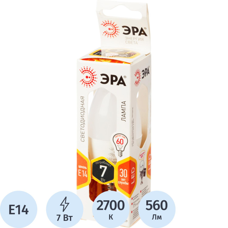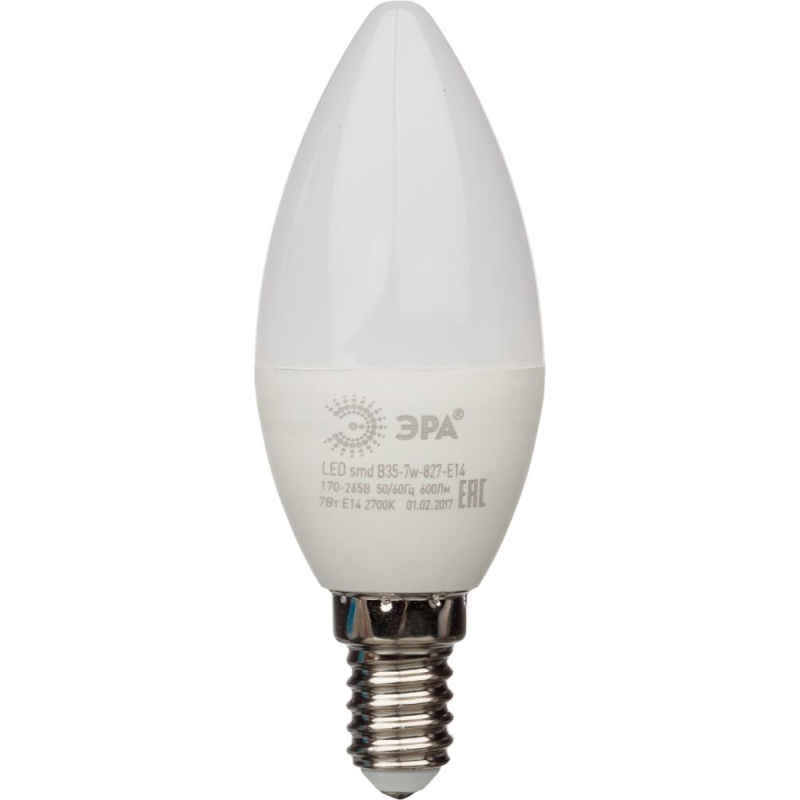Светодиодная лампа классической формы свечи ЭРА (матовая), излучает теплый белый свет, с цоколем E14, мощность 7 Вт. Современный, качественный и доступный источник света. Создает яркое ровное освещение и экономит до 90% электроэнергии по сравнению с лампой накаливания с аналогичным световым потоком. Модель LED B35-7W-827-E14. Преимущества изделия: - Срок службы 30000 h - Низкое энергопотребление - Диапазон рабочих температур от - 25 до 50°C - Мгновенно включается и не нагревается Характеристики изделий: - Коэффициент цветопередачи Ra 80 - Световой поток 560 Лм - Цветовая температура 2700 К Основные габариты (мм): - Длина 100 мм (L) - Диаметр 35 мм (D) Области применения: - Бытовое использование: потолочные, настенные, настольные светильники, люстры и бра - Коммерческое освещение: салоны красоты, столовые, кафе, рестораны, фитнес-центры и т. д. Внешний вид и/или характеристики товара могут быть изменены производителем в соответствии с производственным процессом.