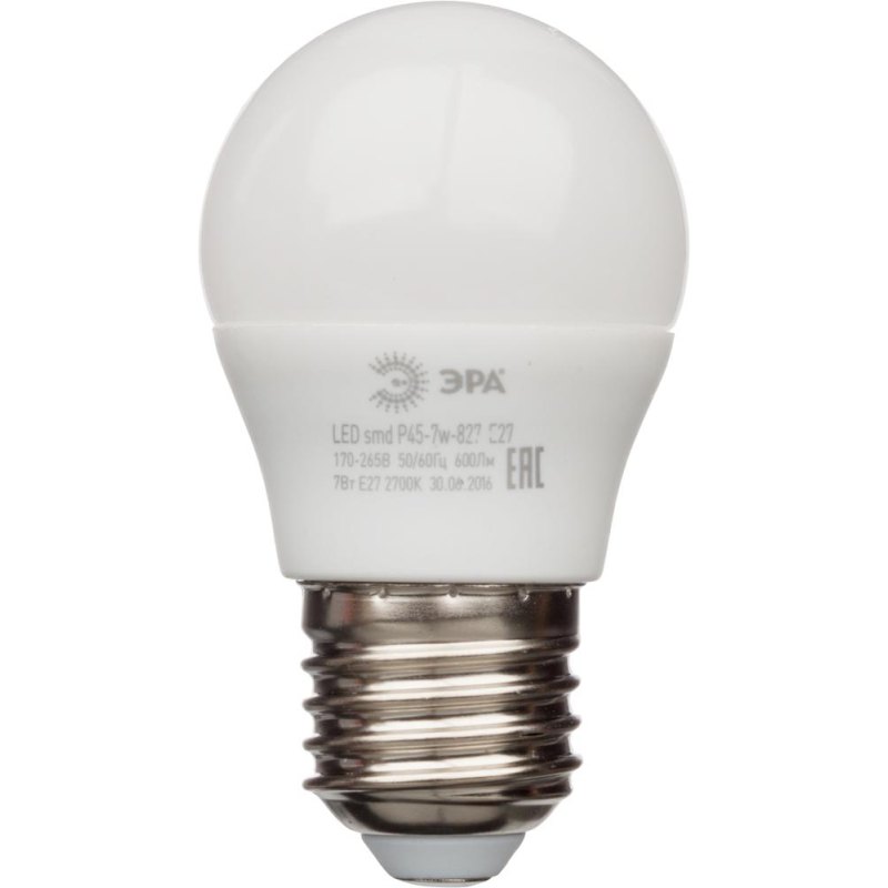 Светодиодная лампа классической формы шара ЭРА (матовая), излучает теплый белый свет, с цоколем E27, мощность 7 Вт. Современный, качественный и доступный источник света. Создает яркое ровное освещение и экономит до 90% электроэнергии по сравнению с лампой накаливания с аналогичным световым потоком. Модель LED P45-7W-827-E27. Преимущества изделия: - Срок службы 30000 h - Низкое энергопотребление - Диапазон рабочих температур от - 25 до 50°C - Мгновенно включается и не нагревается Характеристики изделий: - Коэффициент цветопередачи Ra 80 - Световой поток 560 Лм - Цветовая температура 2700 К Основные габариты (мм): - Длина 80 мм (L) - Диаметр 45 мм (D) Области применения: - Бытовое использование: потолочные, настенные, настольные светильники, люстры и бра - Коммерческое освещение: салоны красоты, столовые, кафе, рестораны, фитнес-центры и т. д. Внешний вид и/или характеристики товара могут быть изменены производителем в соответствии с производственным процессом.