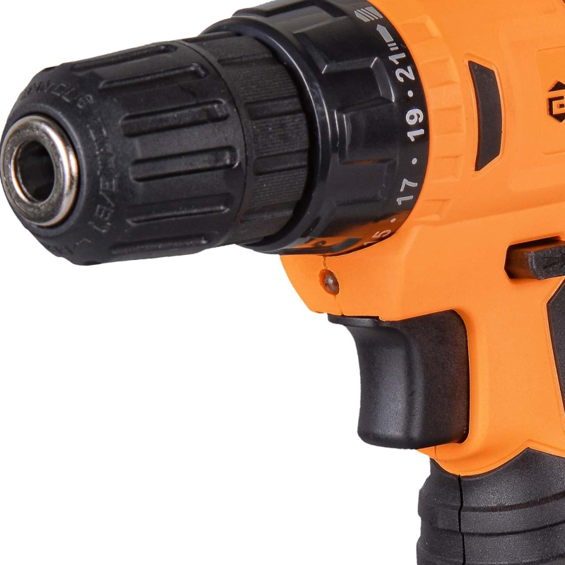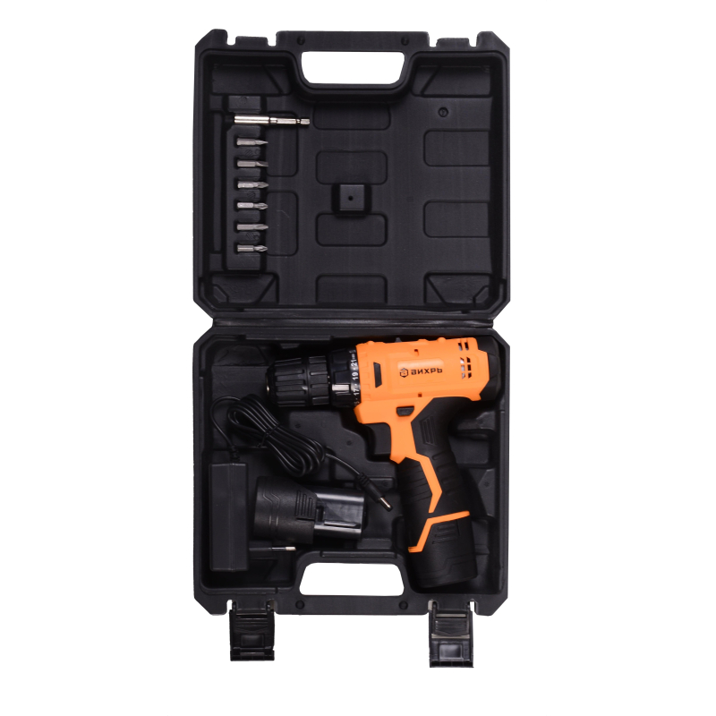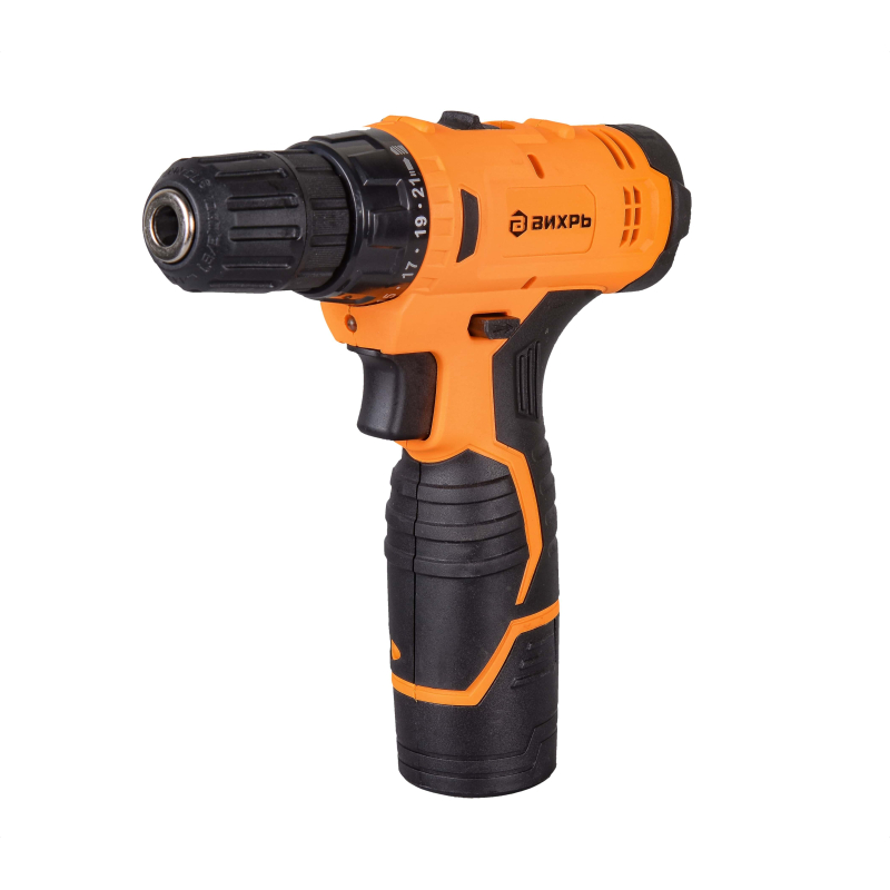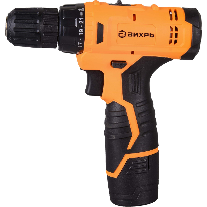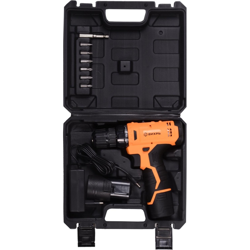 Аккумуляторная <nobr>дрель-шуруповерт</nobr> ВИХРЬ<nobr>ДА-12Л-2К</nobr> 72/14/7 оснащена быстрозажимным патроном с блокировкой шпинделя, что обеспечивает простую смену оснастки. 18 режимов крутящего момента + позиция сверления — для выбора нужного в зависимости от интенсивности работы. Функция реверса позволяет без лишних усилий высвобождать застрявшее сверло. Охлаждение двигателя происходит за счет вывода излишков тепла через вентиляционные отверстия корпуса. Модель поставляется в кейсе, что решает вопрос хранения и транспортировки. В Комплекте 2 аккумулятораВнешний вид и/или характеристики товара могут быть изменены производителем в соответствии с производственным процессом.