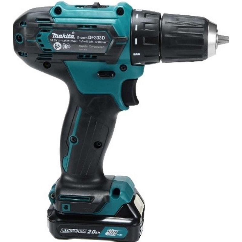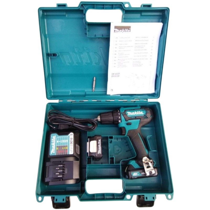 Легкая, компактная <nobr>2-х</nobr> скоростная ударная аккумуляторная <nobr>дрель-шуруповерт</nobr> Makita, снабжена быстрозажимным патроном, что обеспечивает простую смену оснастки. Подходит для сверления отверстий и монтажа оснастки. Мощный светодиод позволяет работать в темных условиях и увеличивает точность выполняемых действий. <nobr>Литий-ионная</nobr> технология увеличивает срок службы аппарата и позволяет заряжать аккумулятор вне зависимости от степени его разрядки. Модель DF333DWAE.Преимущества изделия:— Динамический тормоз — для моментальной остановки вращения патрона— Функция реверса упрощает выведение застрявшего в материале сверла— Регулировка частоты вращения — для точной настройки под разные материалы— Быстрозажимной патрон — для простой смены оснастки— Удобная рукоятка — для комфортной работыХарактеристики изделий:— Напряжение 12 В— Максимальный крутящий момент 30 Нм — Двухпозиционный движковый переключатель 450/1700 об/минОсновные габариты:— Габариты без упаковки 220×79×244 мм— Вес — 1,1 кгКомплектация:— Аккумуляторная <nobr>дрель-шуруповерт</nobr>— 2 <nobr>Li-lon</nobr> аккумулятора 2 Аxч— Зарядное устройство— ЧемоданВнешний вид и/или характеристики товара могут быть изменены производителем в соответствии с производственным процессом.