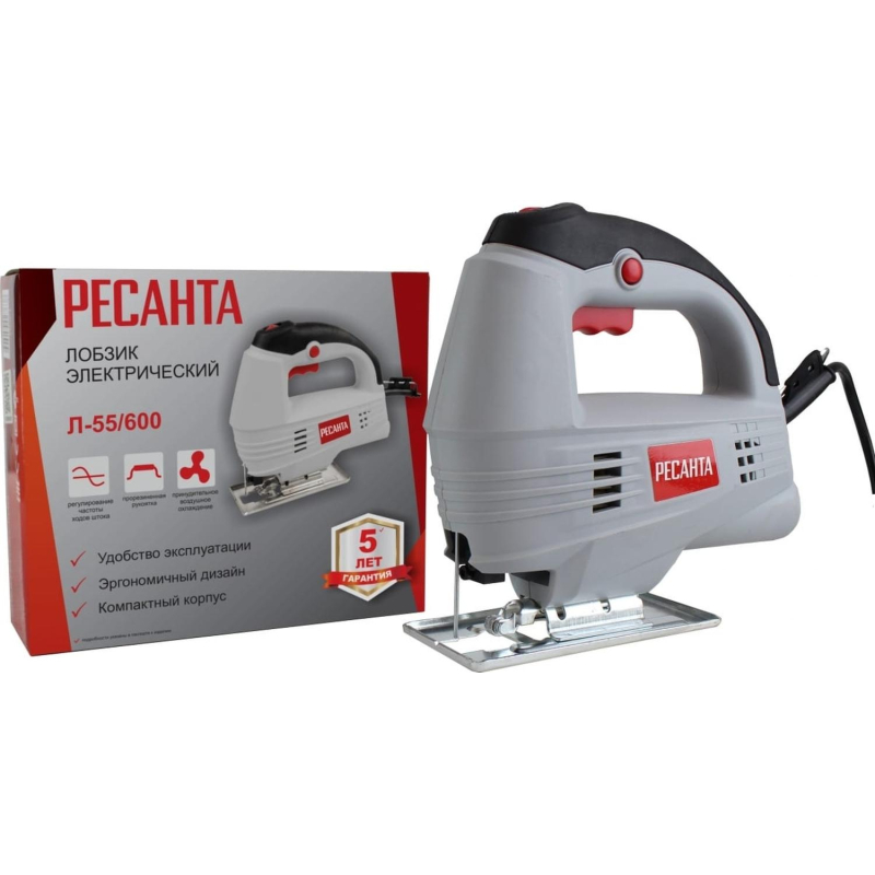 Лобзик электрический (электролобзик) Ресанта относится к ручному инструменту, оснащенному электрическим приводом. Небольшие габариты инструмента сказываются на его весе, который, практически, не ощущается.Предназначение электролобзика заключается в выполнении большого количества операций как по продольной и поперечной резке листового материала, так и по фигурной. С помощью агрегата можно быстро и качественно выполнить следующие виды работ:- прямые резы таких материалов, как дерево, пластмасса, гипсокартон, металлический лист, ламинат, керамическая плитка и др.;- криволинейный рез любого из перечисленных выше материалов;- резка круглых отверстий нужного диаметра;- резка отверстий прямоугольной формы.Электрический лобзик Ресанта Л-55/600 - отличается очень низкой стоимостью и относится к бытовым лобзикам. При этом имеет плавную регулировку скорости для распила различных материалов c высокой точностью и 'чистым резом'. Также есть регулировка угла наклона подошвы +45° и кнопка фиксации выключателя для продолжительного пиления. Комплектация:Лобзик электрический Параллельная направляющая Пилка Ключ шестигранный Паспорт Упаковка