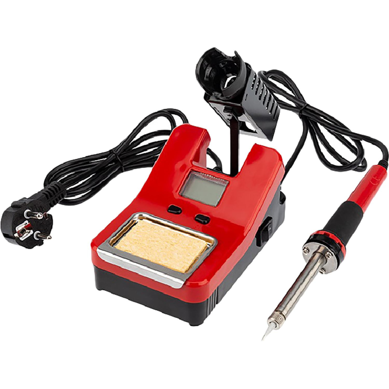 Паяльная станция (160…520 °С) цифровой дисплей 220 V/40 Вт REXANT предназначена для ручного монтажа радиоэлементов. Ее можно использовать как в домашних условиях, так и в профессиональных лабораториях.<br /> Специально разработанный современный корпус имеет компактный и стильный дизайн.<br /> Для профессионального контроля температуры нагрева жала паяльника на корпусе расположены кнопки регулировки и цифровой дисплей с синей подсветкой. Температурный диапазон нагрева жала варьируется в пределах 160…520°С.<br /> Станция комплектуется паяльником оптимальной мощности 40 Вт, металлическим держателем паяльника, губкой для очистки жала в ложементе. Потребляемая мощность станции: AC 220–230 V/40 Вт Данная паяльная станция REXANT является комплектом с лучшим соотношением цены и качества.Внешний вид и/или характеристики товара могут быть изменены производителем в соответствии с производственным процессом.