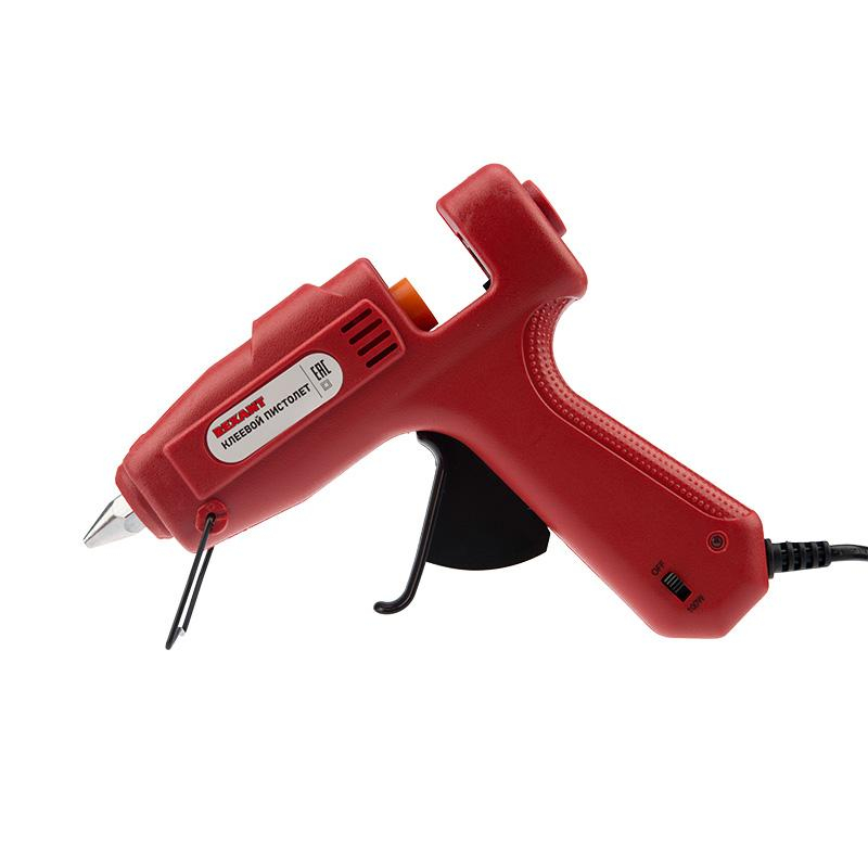 Клеевой пистолет сетевой Rexant (12-0114)Предназначен для прочной фиксации поверхностей с помощью расплавленной клеевой массы. Заправляется он специальным клеевым стержнем. С его помощью вы сможете склеить: дерево, пластик, резину, кожу, стекло, металлы (их лучше перед работой разогревать феном), ткань, пенопласт, керамику, картон, бумагу, цветы и т.д. Используется как в домашних условиях, так и на производстве: для монтажа электрических плат, декорирования, изготовления упаковочной и сувенирной продукции, при прокладке кабеля сетей фиксированной телефонной связи и сетей передачи данных, при производстве багетов и картинных рам. Прибор быстро разогревается, что благотворно влияет на проведения работ.Принцип работы: Клеевой стержень плавится в металлической камере с помощью нагревательного устройства и для точного дозирования при нажатии на курок подается из сопла на склеиваемую поверхность.Мощность потребления: 60 Вт.Индикатор состояния готовности: даНаличие подставки: даМаксимальная температура нагрева: 180 градусов.Длина клеевого стержня: до 30 см.Диаметр клеевого стержня: 11 мм.Длина сетевого кабеля: 1,35 м.Время нагрева до рабочей температуры: 6 минВнешний вид и/или характеристики товара могут быть изменены производителем в соответствии с производственным процессом.