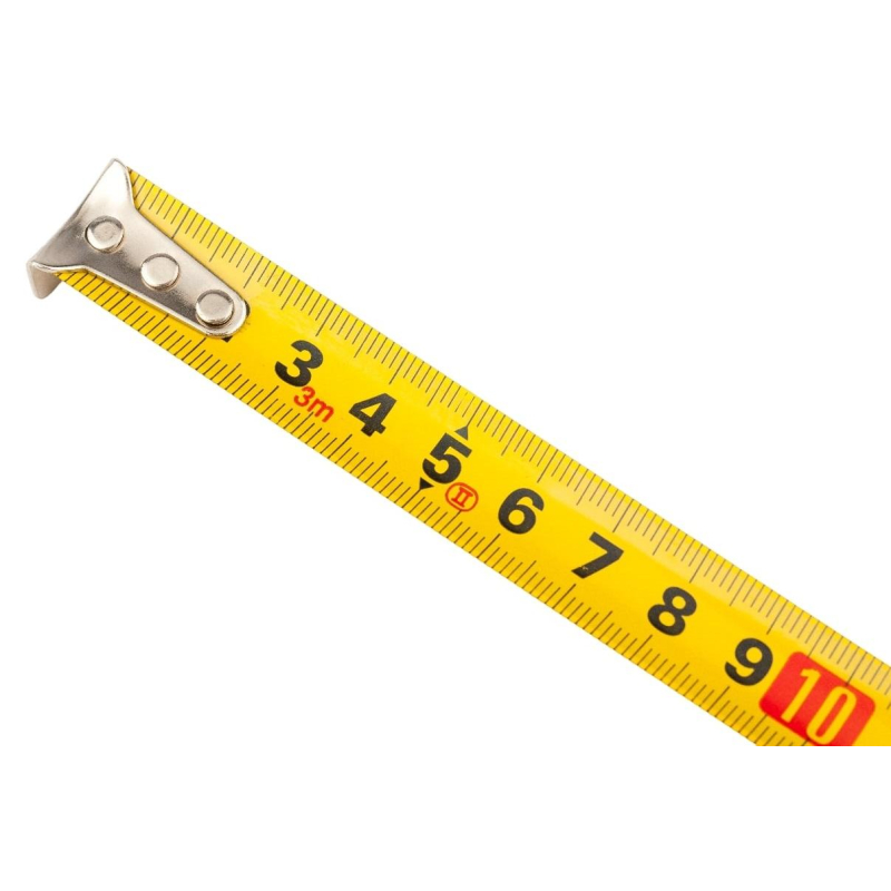 Пластиковый корпус обрезинен для защиты инструмента при падениях.<br />Плавающий зацеп измерительного полотна обеспечивает точные измерения поверхностей. <br />Специальное окошко в зацепе измерительного полотна позволяет использовать рулетку в качестве циркуля. <br />Возвратная пружина усиленного типа.