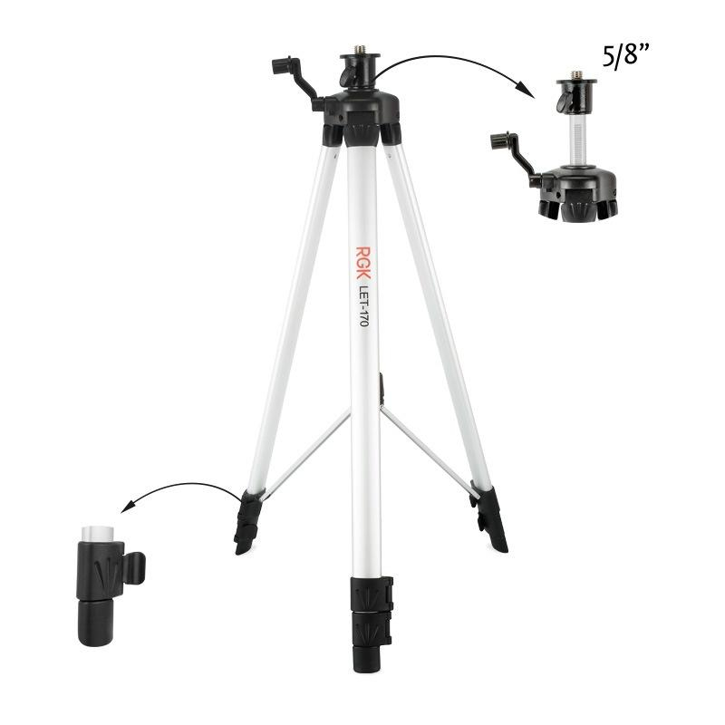 Штатив RGK LET-170 служит для установки лазерных нивелиров и построителей плоскостей в диапазоне высот от 0,67 до 1,7 м.Преимущества моделиПодъемный механизм этой модели выполнен из металла, а значит - отличается долговечностью. Регулировка высоты происходит плавно, благодаря чему всегда можно удобно подобрать нужный уровень. Телескопические стойки геодезического штатива надежно и крепко фиксируются специальными клипсами.Работа с отвесомВозможность использования лазерного отвеса нивелира позволяет выставить прибор в нужной точке с высокой точностью. Это часто бывает необходимо при проведении строительных работ как в помещении (монтаж профиля под перегородки), так и на улице (разметка фундамента).Алюминиевый корпусКорпус выполнен из алюминия - легкого и прочного материала, не подверженного коррозии. Тренога весит около 1.5 кг, за счет чего ее легко перемещать в процессе ремонта.Складная конструкцияВ сложенном состоянии компактное устройство занимает мало места, что вкупе с наличием прочного комплектного чехла упрощает перевозку и хранение.Внешний вид и/или характеристики товара могут быть изменены производителем в соответствии с производственным процессом.