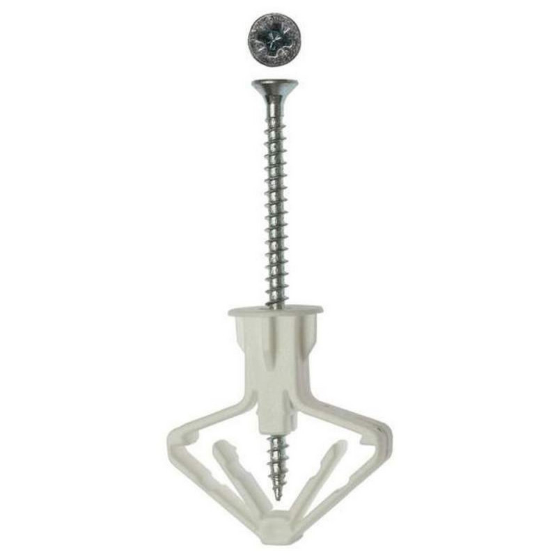 Дюбель-бабочка Зубр 4-301326 для пустотелых конструкций состоит из материала полипропилен. Предназначен для крепления к гипсокартону, ГВЛ, ДСП и другим материалам (толщиной 10-12 мм). Может применяться и в случае использования двойного слоя гипсокартона или ГВЛ общей толщиной 20-24 мм.