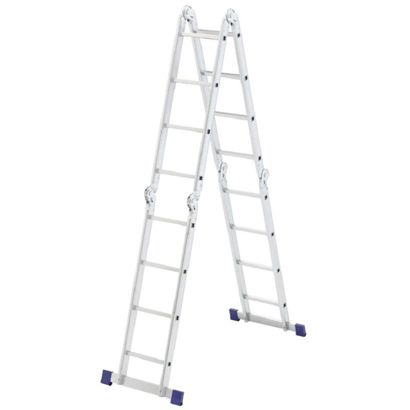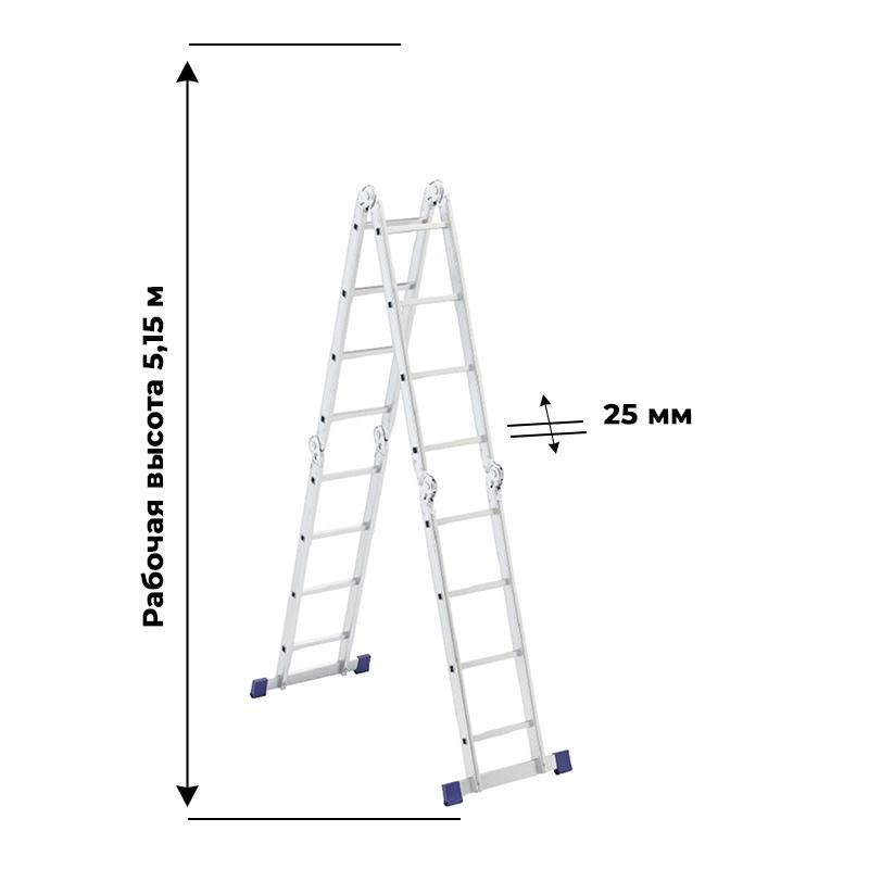 Шарнирная алюминиевая лестница Сибртех 97882 представляет собой 4 секции по 4 ступени, которые можно настроить в нескольких рабочих положениях. Она может использоваться в качестве приставной лестницы, двухсторонней стремянки и помоста. Будет полезна как в быту, так и на небольших стройках, в гараже и магазинах. Преимущества: - Широкие траверсы - лестница устойчиво фиксируется на горизонтальной поверхности в любом рабочем положении. - Противоскользящее рифление на ступенях - пользоваться лестницей безопасно, нога не соскользнет в процессе выполнения работ. - Сочетание легкости и прочности - рама изготовлена из прессованного алюминиевого профиля прямоугольного сечения, выдерживает нагрузку до 120 кг. - Надежные шарнирные механизмы - лестница не шатается в рабочих положениях, смена рабочих положений происходит быстро и легко. - Компактное хранение и удобная транспортировка - в сложенном виде лестница не занимает много места. Внешний вид и/или характеристики товара могут быть изменены производителем в соответствии с производственным процессом.