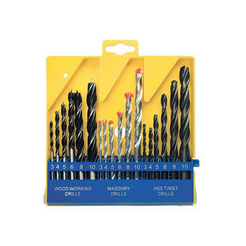 Комбинированный набор с различными типами сверл (по дереву, по металлу и по бетону) наиболее распространенных размеров.Сверла по бетону изготовлены из углеродистой стали и оснащены твердосплавными напайками.Сверла по металлу из быстрорежущей стали (HSS).Сверла по дереву из углеродистой стали.Сверла предназначены для бытового использования.Упакованы в пластмассовый пенал.Размер сверл по бетону: 3 х 60 мм, 4 х 73 мм, 5 х 85 мм, 6 х 97 мм, 8 х 118 мм, 10 х 118 мм.Размер сверл по металлу: 3 х 60 мм, 4 х 75 мм, 5 х 85 мм, 6 х 91 мм, 8 х 115 мм, 10 х 131 мм.Размер сверл по дереву: 3 х 60 мм, 4 х 75 мм, 5 х 85 мм, 6 х 91 мм, 8 х 114 мм, 10 х 120 мм. <!--noindex-->Внешний вид и/или характеристики товара могут быть изменены производителем в соответствии с производственным процессом.<!--/noindex-->