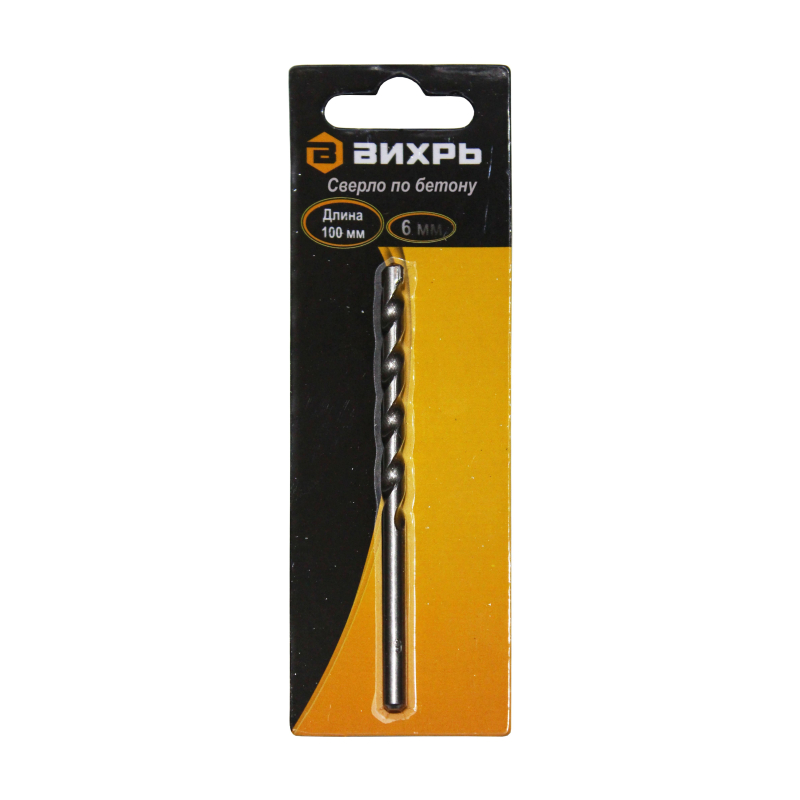 Сверло для работы по бетону. Цилиндрический хвостовик. Материал - сталь. Размер: 6x100 мм. Упаковка: блистер.
