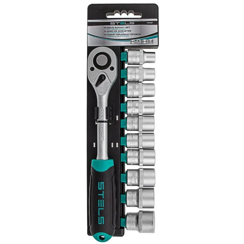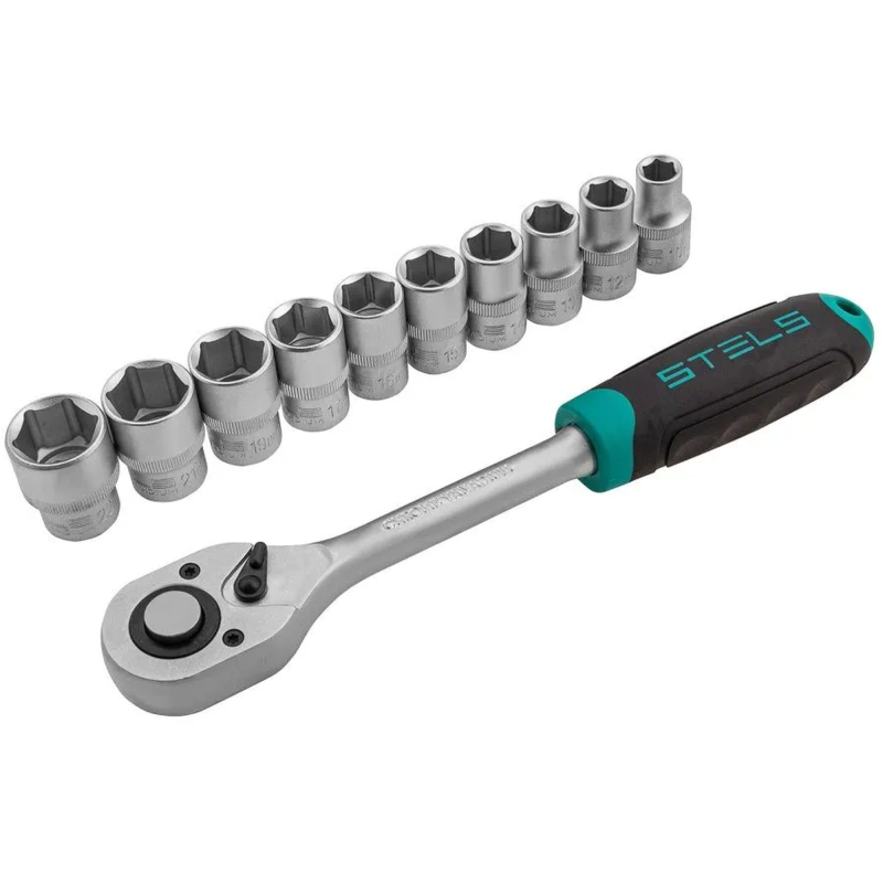 Набор предназначен для монтажа и демонтажа резьбовых соединений при обслуживании крупногабаритной техники. Корпус трещоточной рукоятки и торцевых головок выполнен из хромованадиевой стали с матовым хромированием покрытия. Рукоятка ключа изготовлена из двухкомпонентного материала. Головки изготовлены из высококачественной инструментальной стали. Набор состоит из 11 предметов, включая держатель для инструментов.Преимущества:- выдерживают высокие нагрузки.- антикоррозийное покрытие.- шаг трещоточного механизма - 5 градусов.- шля работы в труднодоступных местах.- удобная для хранения упаковка.Комплектность:- головка торцевая, 10 мм - 1 шт.- головка торцевая, 12 мм - 1 шт.- головка торцевая, 13 мм - 1 шт.- головка торцевая, 14 мм - 1 шт.- головка торцевая, 15 мм - 1 шт.- головка торцевая, 16 мм - 1 шт.- головка торцевая, 17 мм - 1 шт.- головка торцевая, 19 мм - 1 шт.- головка торцевая, 21 мм - 1 шт.- головка торцевая, 22 мм - 1 шт.- ключ трещоточный 1/2 - 1 шт.- пластиковый-держатель - 1 шт.Внешний вид и/или характеристики товара могут быть изменены производителем в соответствии с производственным процессом.