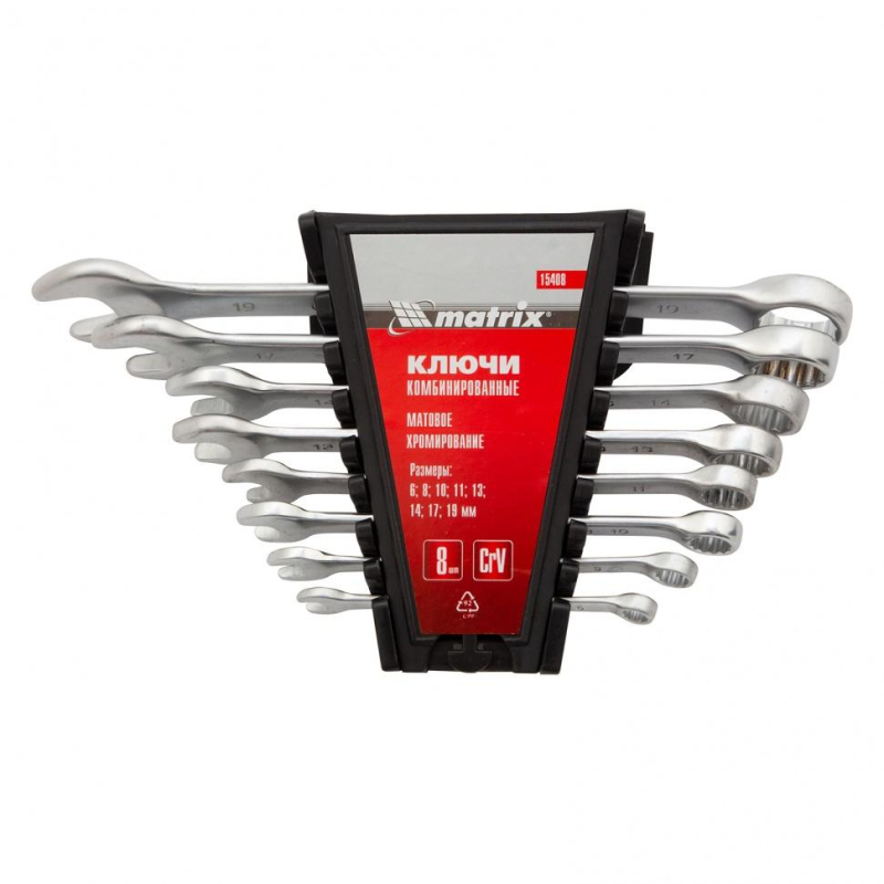 Ключи изготовлены из хром-ванадиевой стали. Твердость материала рабочей части ключа 45 HRc (требования ГОСТ - 45-51 HRc). Ключи имеют матовое хромоникелевое покрытие. Профиль кольцевого зева имеет 12 граней, что увеличивает площадь соприкосновения рабочих поверхностей и снижает риск деформации граней крепежа при монтаже. Угол наклона кольцевого зева относительно плоскости ключа в 15 градусов делает монтаж более удобным. Поставляются в комплекте с трапециевидным пластмассовым держателем. Набор предназначен для монтажа демонтажа резьбовых соединений.Внешний вид и/или характеристики товара могут быть изменены производителем в соответствии с производственным процессом.