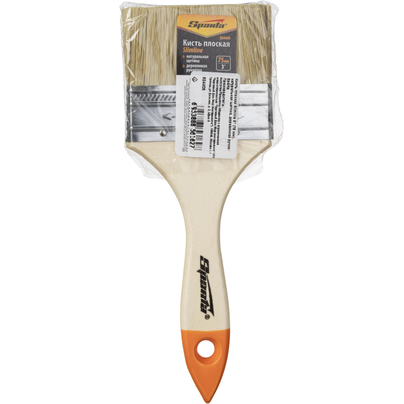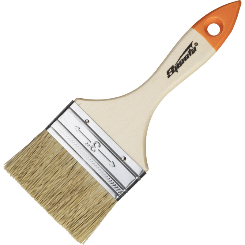 Плоская малярная кисть Sparta применяется для отделки внутренних и внешних поверхностей, для торцевания или лакировки, окрашивания поверхностей различного размера. Она предназначена для работ с масляными красками и лаками. Ворс кисти сделан из натуральной щетины одинарной выварки. Щетина расщеплена на концах, надежно закреплена металлическим бандажом с антикоррозийным покрытием. Деревянная ручка утолщена в зоне охвата. Ширина изделия составляет 75 мм, толщина - 11 мм. Длина кисти - 200 мм. Обойма изготовлена из металла, рукоять - из дерева. <!--noindex-->Внешний вид и/или характеристики товара могут быть изменены производителем в соответствии с производственным процессом.<!--/noindex-->