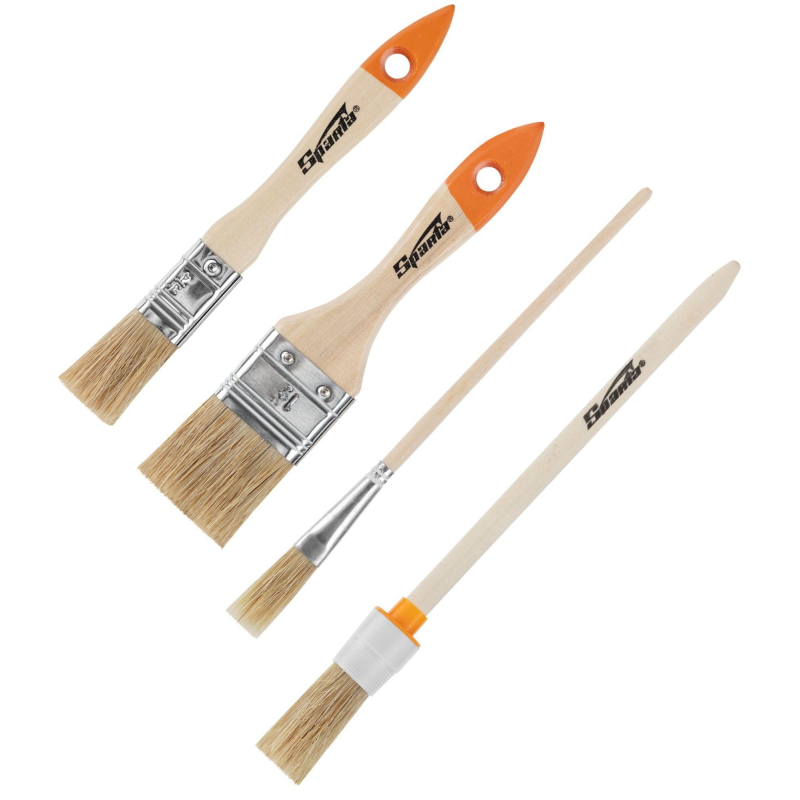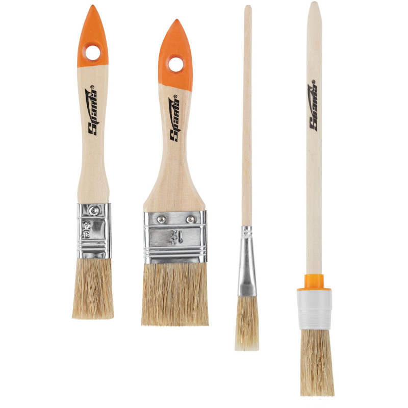 Набор включает 4 плоские кисти с натуральной щетиной. Такие кисти применяют для отделки внутренних и внешних поверхностей, для торцевания или лакировки, окрашивания поверхностей различного размера. Ширина кистей: 20, 37, 11 и 18 мм. Толщина ворса: 10 мм. Кисти изготовлены из натуральной светлой щетины и имеют деревянную ручку.<!--noindex-->Внешний вид и/или характеристики товара могут быть изменены производителем в соответствии с производственным процессом.<!--/noindex-->