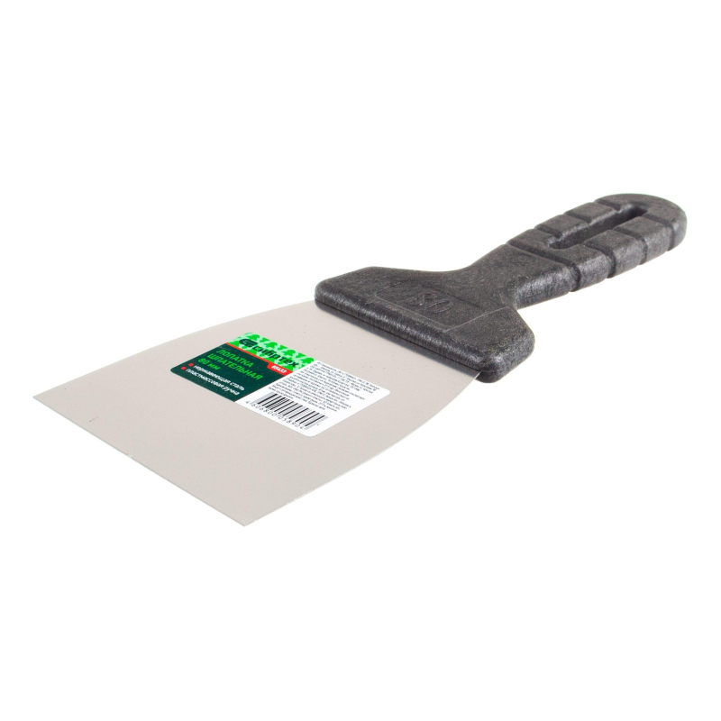Шпатель-лопатка предназначен для нанесения, выравнивания и сглаживания шпаклевочного слоя на больших и малых поверхностях. Шпатель используется также для затирки швов. Полотно шпателя изготовлено из нержавеющей стали 30x13 (12x17). Облегченная ручка из ударопрочной пластмассы.Внешний вид и/или характеристики товара могут быть изменены производителем в соответствии с производственным процессом.