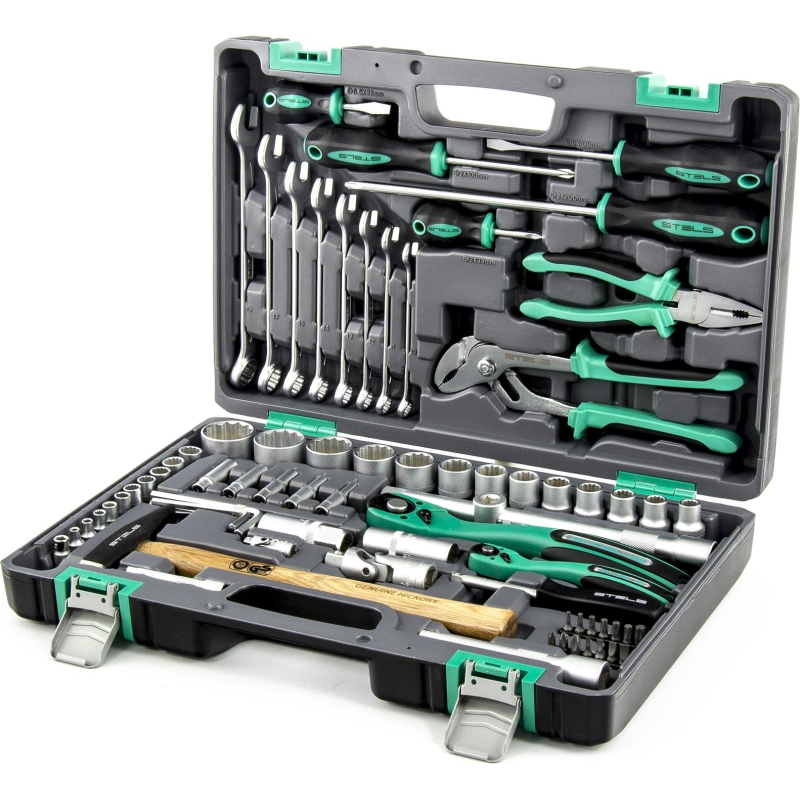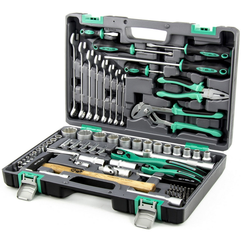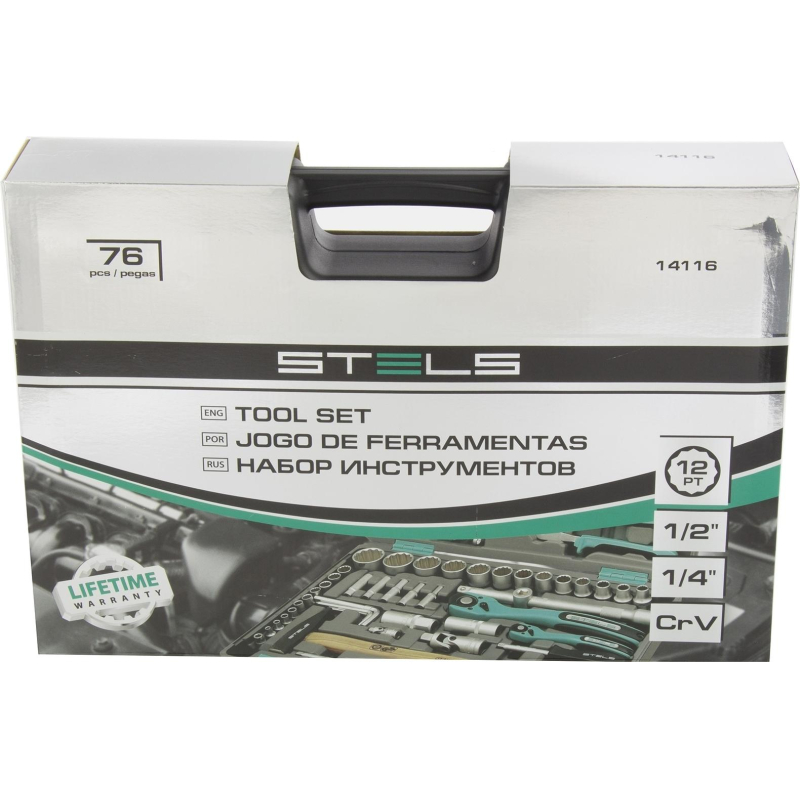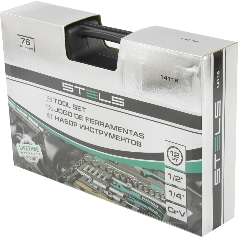 Набор инструмента универсальный Stels 76 предметов (14116) разработан специально для автолюбителей и центров технического обслуживания. Каждый этап производства контролируется в соответствии с международными стандартами. головки и комбинированные ключи изготовлены из хромованадиевой стали, придающей инструменту исключительную твердость в сочетании с легкостью. Биты, биты-вставки и отвертки производятся из стали S2, улучшающей свойства инструмента. Набор комплектуется трещотками с реверсом и быстрым сбросом, трещоточный механизм имеет 72 зуба и обеспечивает исключительную мягкость и плавность в работе. Все наборы упакованы в кейс, изготовленный из жесткого противоударного пластика, с металлическими застежками. Наборы инструмента Stels пригодятся вам не только в автомобиле. С их помощью можно проводить бытовой ремонт дома и на даче, ремонт бытовых конструкций и садовой техники. На все наборы инструментов Stels предоставляется пожизненная гарантия (подробнее об условиях гарантии вы можете узнать из гарантийного талона). Состав набора: Ключ трещоточный 1/2. Ключ трещоточный 1/4. головки торцевые 1/2: 10, 11, 12, 13, 14, 15, 17, 19, 22, 24, 27, 30, 32. головки торцевые 1/4: 4, 5, 6, 7, 8, 9, 10, 11, 12, 13. головки торцевые 1/4, удлиненные: 5, 6, 7, 8, 9. Ключи комбинированные: 10, 11, 12, 13, 14, 15, 17, 19. Кардан 1/2. Кардан 1/4. Удлинитель 1/2. Удлинитель 1/4. Отвертка-держатель 1/4. Переходник для бит 1/4. Набор шестигранных ключей: 1. 5 мм. 2. 0 мм. 3 мм. 3. 5 мм. 5 мм. 6 мм. 7 мм. головки свечные 16 мм. и 21 мм. Вороток Т-образный 1/2. Биты: Т10, Т15, Т20, Т25, Т27, Т30, T40, SL3, SL4, SL5, SL6, PH1, PH2, PH3. Пассатижи. Клещи переставные. Молоток, масса головки 0,3 кг. Отвертки: SL6x100; SL6,5x38; PH2x38; PH2x100; PH3x200.Внешний вид и/или характеристики товара могут быть изменены производителем в соответствии с производственным процессом.