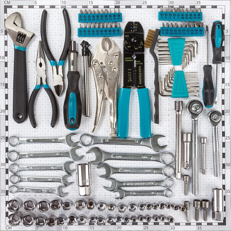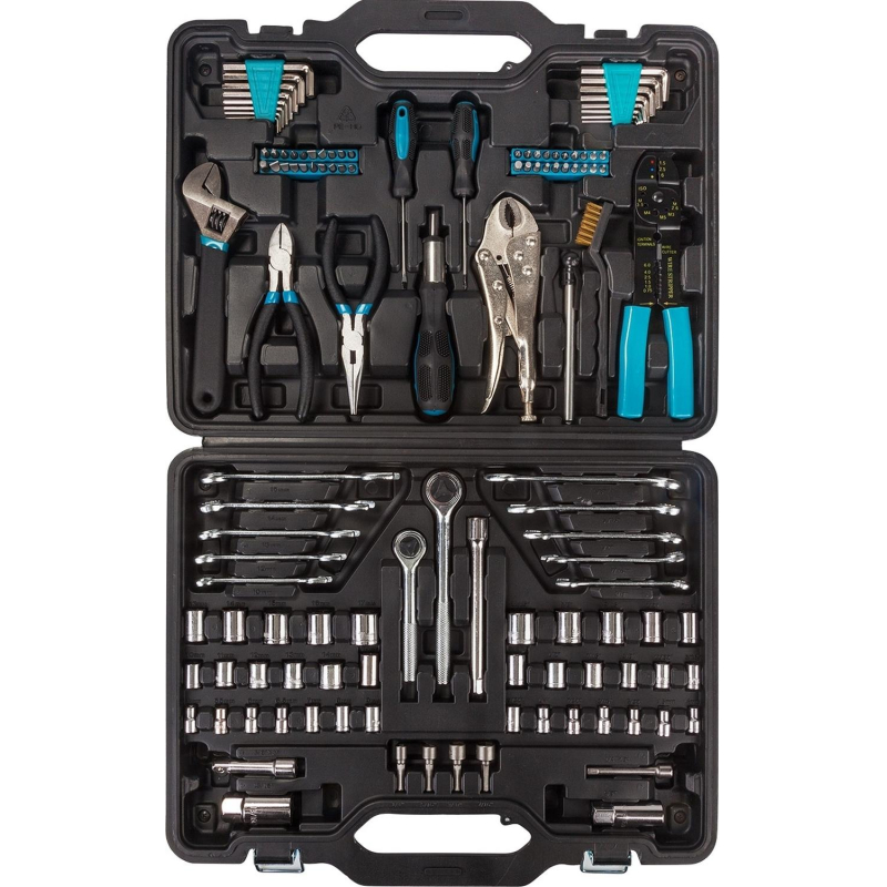 Набор инструмента универсальный Bort BTK-123 123 предмета (91272867) прекрасно подойдет домашнему мастеру, автомобилисту, а также может использоваться во время строительных, монтажных и других видов работ. Набор включает в себя 123 предмета, изготовленных из высокопрочных материалов: ключи, кусачки из крепкой кованой стали, биты (Cr-V) из хром-ванадиевой стали. Благодаря двухкомпонентным ручкам, отвертки удобно держать. Кроме того, в наборе есть ручная струбцина (пинцы), легко фиксируются небольшие детали. Клещи электрика позволяют резать провода и снимать с них изоляцию. Латунной щеткой удобно чистить клемм. ы и контакты. Инструмент размещен в специальном кейсе для хранения. Отличный вариант для повседневного использования. Бита 25 мм. 40 шт. (PH0, PH1, PH2, PH3, PH4, 3, 4, 5, 6, 7, T15, T25, T30, H3, H4, H5, H6, S1, S2, S3, PH0, PH1, PH2, PH3, PH4, 3, 4, 5, 6, 7, T15, T25, T30, H3, H4, H5, H6, S1, S2, S3); Бокорез; Держатель для бит 170 мм. с трещоткой; Клещи для зачистки и обжима проводов Ключ гаечный 10 шт. ( 10, 12, 13, 14, 15, 3/8, 7/16, 1/2, 9/16, 5/8) Ключ разводной; Ключ шестигранный 16 шт. (1,5; 2; 2,5; 3; 4; 5; 5,5; 6, 1,5; 2; 2,5; 3; 4; 5; 5,5; 6) Манометр; Металлическая щетка; Отвертка 2 шт. (SL, PH0); Пинцы 7 дюйма; Рукоятка с трещоткой квадрат 1/4Рукоятка с трещоткой квадрат 3/8Свечной ключ квадрат 3/8 16мм. Свечной ключ квадрат 3/8 21мм. Тонкогубцы; Торцевая головка квадрат 1/4 24 шт. (4, 4. 5, 5, 5. 5, 6, 6. 5, 7, 8, 9, 10, 11, 12, 13, 14, 5/32, 3/16, 7/32, 1/4, 9/32, 5/16, 11/32, 3/8, 7/16, 1/2) Торцевая головка квадрат 3/8 12 шт. ( 12, 13, 14, 15, 16, 17, 3/8, 7/16, 1/2, 9/16, 5/8, 11/16) Удлинитель квадрат 1/4 3 дюйма; Удлинитель квадрат 3/8 3 дюйма; Удлинитель квадрат 3/8 6 дюйма; Головка-бита 4 шт. (1/4, 5/16, 3/8, 7/16)Внешний вид и/или характеристики товара могут быть изменены производителем в соответствии с производственным процессом.