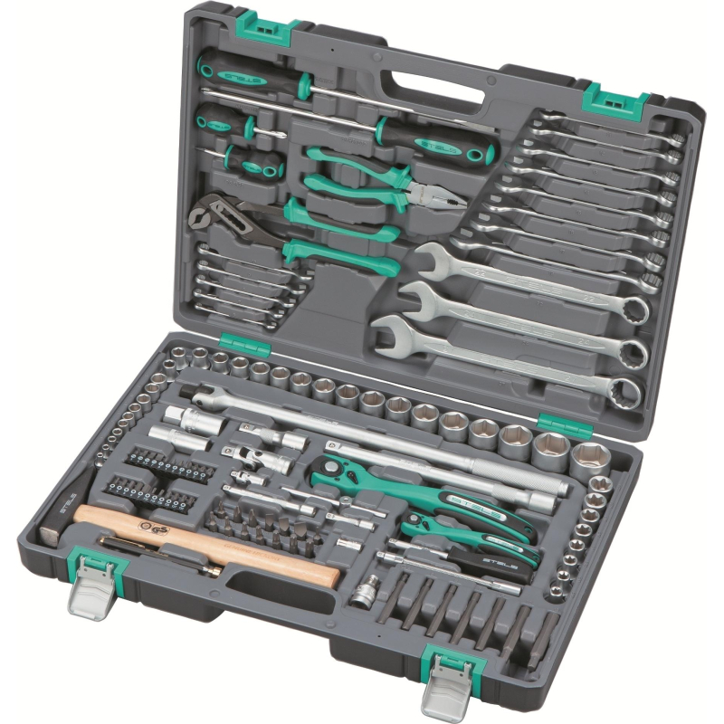 Набор инструмента универсальный Stels 119 предметов (14112) разработаны специально для автолюбителей и центров технического обслуживания. Каждый этап производства контролируется в соответствии с международными стандартами. головки и комбинированные ключи изготовлены из хромованадиевой стали, придающей инструменту исключительную твердость в сочетании с легкостью. Биты, биты-вставки и отвертки производятся из стали S2, улучшающей свойства инструмента. Набор комплектуется трещотками с реверсом и быстрым сбросом, трещоточный механизм имеет 72 зуба и обеспечивает исключительную мягкость и плавность в работе. Наборы инструмента Stels пригодятся вам не только в автомобиле. С их помощью можно проводить бытовой ремонт дома и на даче, ремонт бытовых конструкций и садовой техники. На все наборы инструментов Stels предоставляется пожизненная гарантия (подробнее об условиях гарантии вы можете узнать из гарантийного талона). Состав набора: ключ трещоточный 1/4. ключ трещоточный 1/2. головки торцевые 1/2: 10, 11, 12, 13, 14, 15, 16, 17, 18, 19, 20, 21, 22, 23, 24, 27, 30, 32, Е10, Е11, Е12, Е14, Е16, Е18, Е20, Е22. головки свечные 1/2: 21 мм. и 16 мм. удлинители 1/2 250 мм. под ключ и 75 мм. под ключ. удлинители 1/4 100 мм. под ключ и 50 мм. под ключ. удлинитель гибкий 1/4: 145 мм. под ключ. головки торцевые 1/4: 4, 5, 6, 7, 8, 9, 10, 11, 12, 13. вороток г-образный. вороток на 1/4. биты, 8 мм. диаметр, длина 30 мм. PH1, PH2, PH3 SL4, SL5. 5, SL7 T10, T20, T25, T27, T30, T40, T45, T50. биты 1/4 дюйма; диаметра, длина 25 мм. Т10, Т15, Т20, Т25, Т27, Т30, Н3, Н4, Н5, Н6, Н7, SL3, SL4, SL5. 5, SL7, PZ1, PZ2, PZ3, PH0, PH1, PH2, PH3. биты удлиненные, длина 75 мм. диаметр 8 мм. переходник с 1/2 квадрат на шестигранник диаметром 8 мм. H4, H5, H6, H7, H8, H10, H12 молоток, с квадратным бойком, 300 гр. отвертка держатель 1/4. пассатижи. клещи переставные. отвертки SL8 x 200 мм. PH3 x 200 мм. отвертки SL6. 5 x 38 мм. PH2 x 38 мм. ключи комбинированные 6, 7, 8, 9, 10, 11, 12, 13, 14, 15, 16, 17, 19, 22, 24, 27. Ручка телескопическая магнит, длина 15 мм. выдвигается на 54 мм. диаметр наконечника 11 мм. кардан на 1/2 и 1/4. Кейс.Внешний вид и/или характеристики товара могут быть изменены производителем в соответствии с производственным процессом.