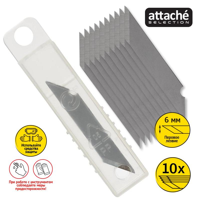 Набор запасных перовых лезвий Attache Selection. Используются для резки всех видов бумаги, пленки, обоев, кожи. Особенности изделия: - Сменные перовые лезвия из стали для ножа арт. 280455 - В комплекте 10 шт. Характеристики изделия: - Ширина лезвия 6,0 мм - Толщина лезвия 0,5 мм Меры предосторожности: - При работе с лезвиями используйте средства защиты - Не утилизируйте лезвия с бытовыми отходами - Хранить в недоступном для детей месте