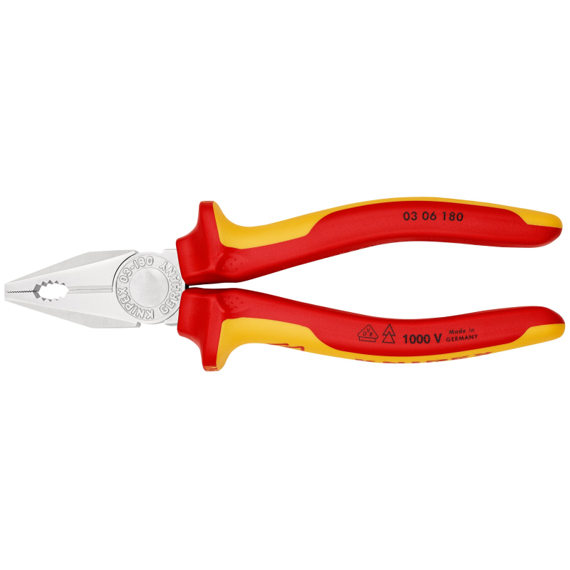 Диэлектрическиеплоскогубцы комбинированные VDE Knipex KN-0306180 длиной 180 мм, идеальный инструмент для широкого спектра разнообразных работ с электрооборудованием.Внешний вид и/или характеристики товара могут быть изменены производителем в соответствии с производственным процессом.