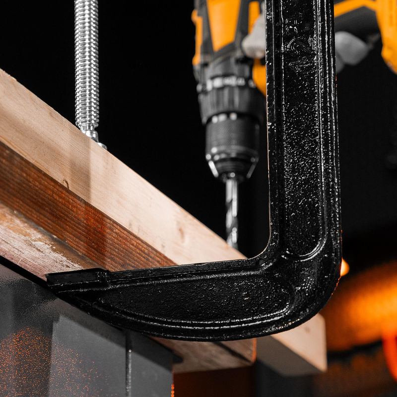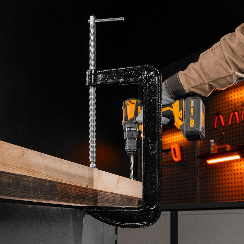 Рама струбцины покрыта цветным лаком. Винт струбцины со специальным зажимом и крупной червячной резьбой позволяет надежно фиксировать предметы.Внешний вид и/или характеристики товара могут быть изменены производителем в соответствии с производственным процессом.
