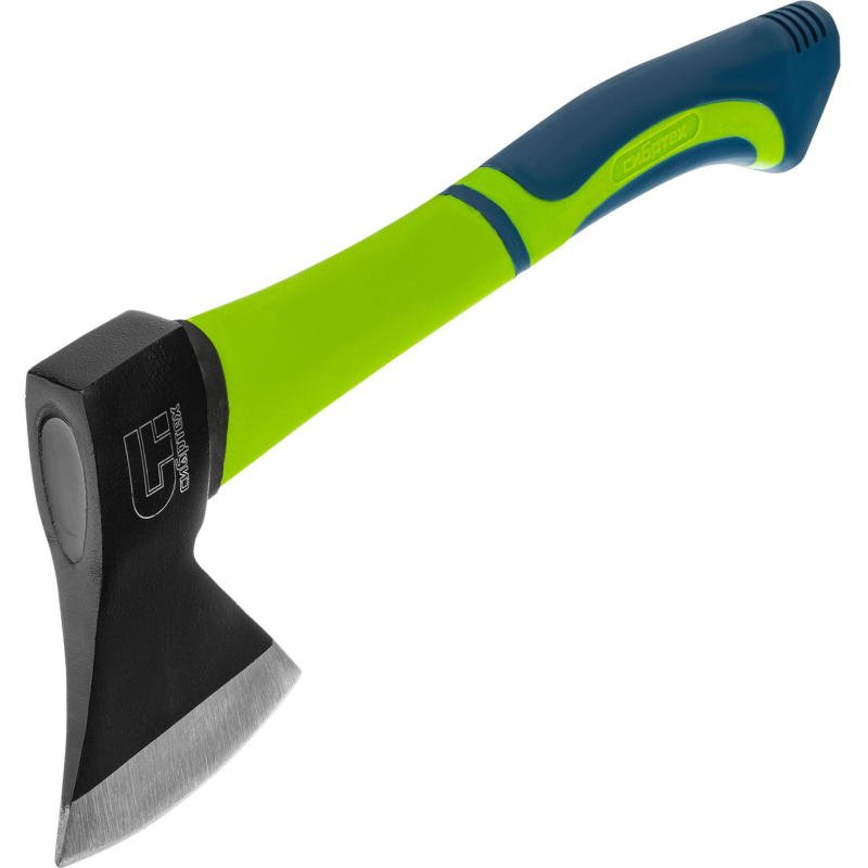 Топор универсальный Сибртех с топорищем из фибергласса 983 г (21644) позволяет осуществлять рубку, тесание и колку твердой или мягкой древесины. Он будет полезен на дачном и сельскохозяйственном участке при необходимости подготовки дров, рубки кустов, сучьев и других работ. Полотно оснащено полукруглой режущей кромкой с углом заточки 20-30 градусов, поэтому топором легко работать.ПреимуществаПолотно из стали 45 - топор оптимально подходит для непрофессионального применения.Прочность - полотно закалено до твердости 48-57 HRC (на высоте до 25 мм от режущей кромки).Заточенное лезвие - инструмент полностью готов к использованию.Качественное топорище - фибергласс устойчив к негативным воздействиям окружающей среды, имеет механическую прочность и гасит вибрации.Надежный хват - небольшой изгиб и обрезиненные вставки снижают риск проскальзывания топора в руках.Комфортная работа - небольшой вес полотна 600 г позволяет уменьшить нагрузку на руки.Компактность - топор оснащен небольшой рукояткой 365 мм.КомплектацияТопор;Упаковка.Внешний вид и/или характеристики товара могут быть изменены производителем в соответствии с производственным процессом.