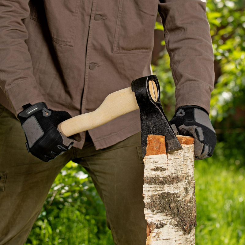 Топор универсальный Россия А2 с деревянным топорищем 1700 г (21674) подходит для выполнения плотницких работ. Инструмент оптимален для рубки и тесания древесины любых пород.ПреимуществаГолова топора изготовлена из стали 60Г и закалена, за счет чего обладает необходимыми прочностными характеристиками.Мастеру не придется тратить время на подготовку топора, т.к. он заточен на заводе.Стальной клин в месте всада не дает сползать полотну в процессе эксплуатации, что повышает удобство и безопасность работы. Деревянное топорище пропитано олифой для предохранения от негативных воздействий внешней среды.Топором можно рубить крупные бревна и пни, т.к. он имеет длинную рукоятку 500 мм и большой вес 1700 г.КомплектацияТопор.Упаковка.Внешний вид и/или характеристики товара могут быть изменены производителем в соответствии с производственным процессом.