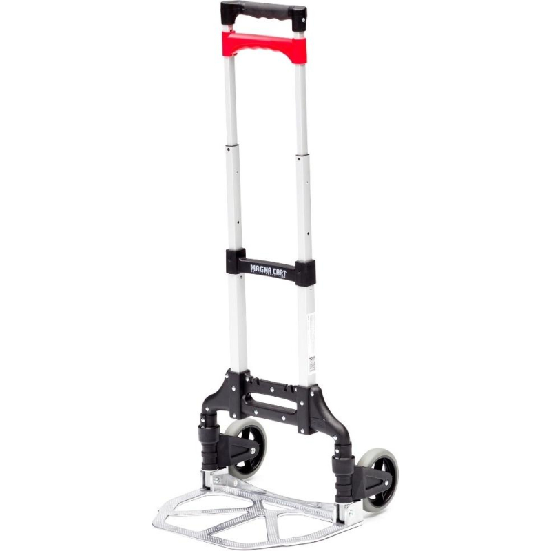 Алюминиевая складная тележка Magna Cart MCX - отличное приспособление для склада, магазина или дома. С такой ручной тележкой вы сможете перевести грузы до 68 кг не напрягаясь. Для изготовления используется качественный алюминий, который выдерживает нагрузки. Уникальная складная конструкция позволяет легко переносить и перевозить тележку в собранном виде. При складывании убирается телескопическая ручка, поднимается площадка для груза и колеса прячутся сзади. В сложенном виде тележка настолько компактна, что с легкостью поместится в салоне или багажнике автомобиля, в гараже за дверью, дома в кладовке. С ней удобно совершать покупки в супермаркетах и магазинах кухонной техники.