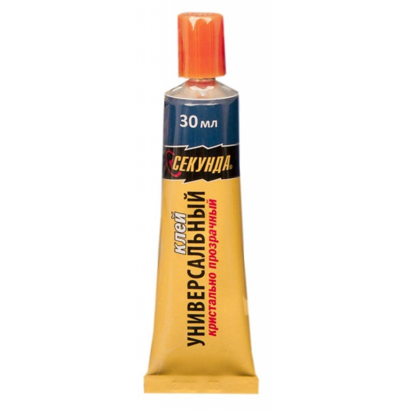 Универсальный прозрачный клей Секунда состоит из полиуретана, ацетона, этилоксалата и других компонентов. Применяется для соединения в различных сочетаниях дерева, металла, мягкого и жесткого ПВХ, полистирола, оргстекла, резины, войлока, кожи, фарфора, керамики, стекла. Удлиненный носик облегчает процесс нанесения клея. Водостойкость и высокие прочностные показатели позволяют использовать его для скрепления изделий, эксплуатирующихся под нагрузкой и в условиях высокой влажности. Склеивает пористые материалы. Тюбик содержит 30 мл универсального клея. <!--noindex-->Товар относится к ценовому сегменту "бюджет". Имеет базовые характеристики и более простую упаковку. Отвечает основным требованиям потребления<!--/noindex--><!--noindex-->Внешний вид и/или характеристики товара могут быть изменены производителем в соответствии с производственным процессом.<!--/noindex-->