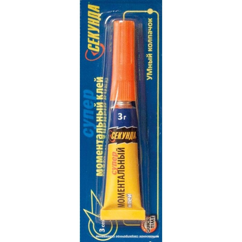 Моментальный клей 'Секунда' изготовлен на основе цианакрилата. Используется для соединения изделий и деталей, изготовленных из различных материалов, таких как металл, многослойные пластмассы, винил, резина, керамика, дерево, картон, кожа и кожзаменители, пробковое дерево и ДСП. Формула клеевого состава QuickTime обеспечивает мгновенное склеивание материалов; качество соединения не ухудшается и сохраняет свою прочность в течение длительного времени. Специальная конструкция насадки тюбика уменьшает риск попадания клея на руки и одежду, позволяя удалить защитную мембрану простым поворотом насадки по часовой стрелке. Объем тюбика - 3 г.Внешний вид и/или характеристики товара могут быть изменены производителем в соответствии с производственным процессом.